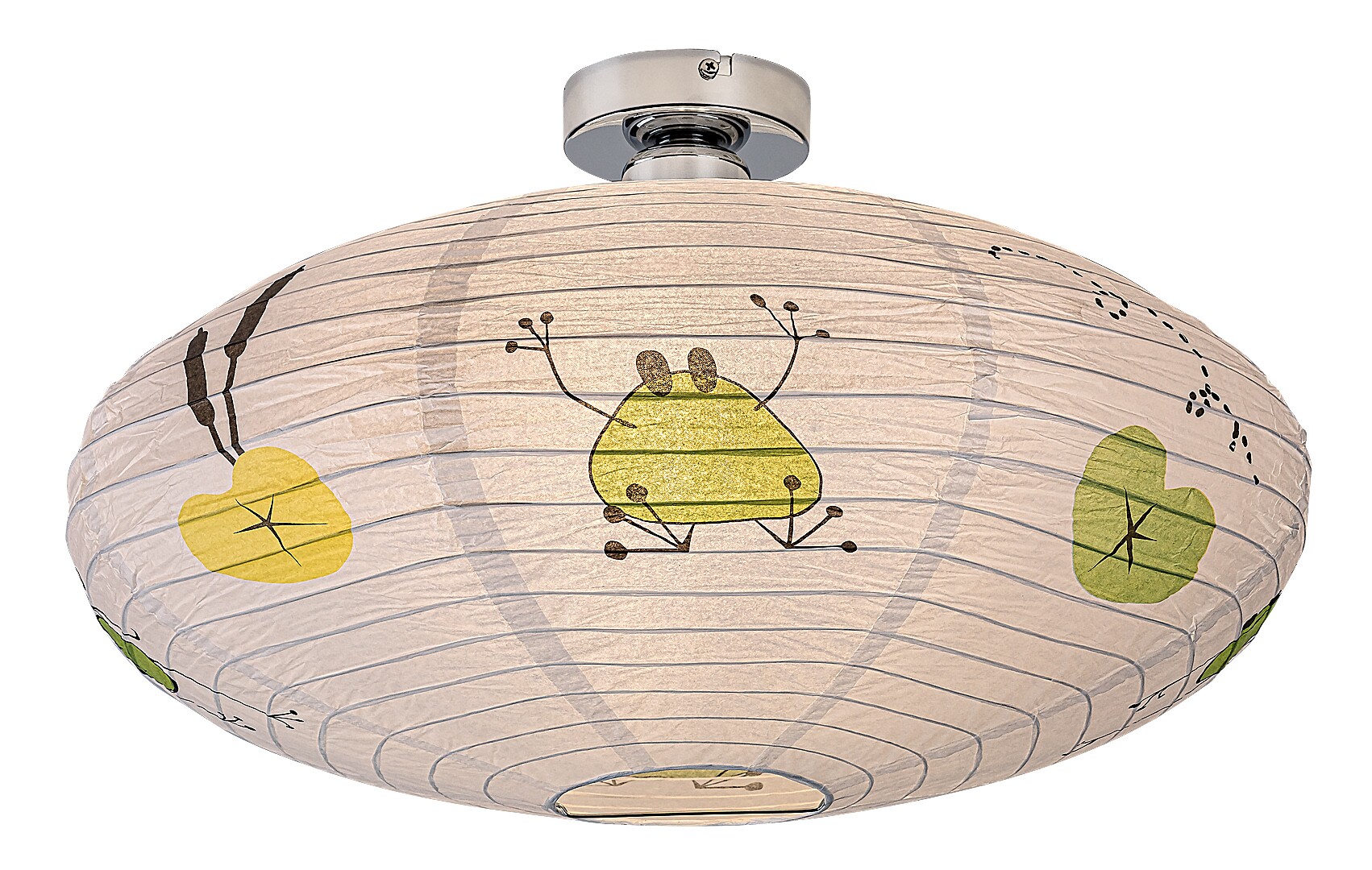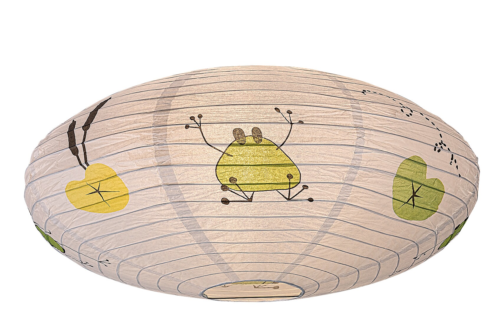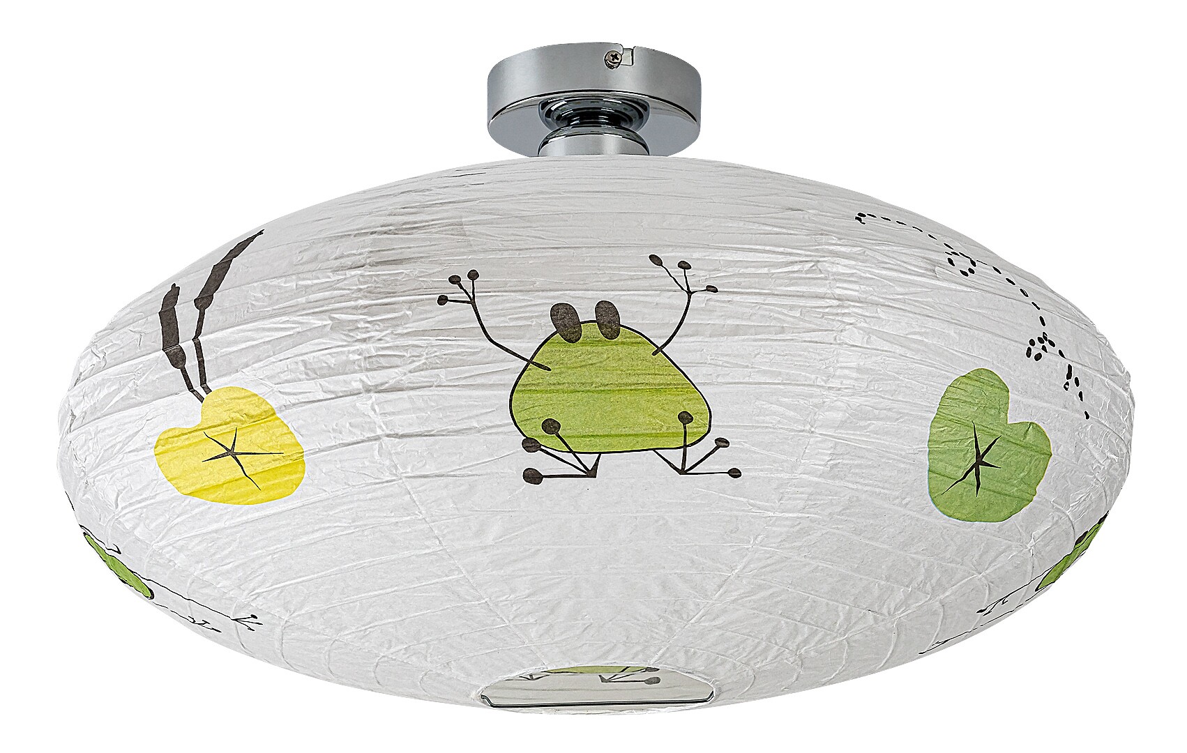 Plafoniera pentru copii Rabalux Froggo din hârtie este un model creat de Rabalux. Este ideală pentru oricine dorește să aducă un motiv vesel și jucăuș în camera copilului. Lampa are o formă rotunjită și aplatizată, este realizată din hârtie și decorată cu un model distractiv cu broscuță și baloane, garantat să aducă un zâmbet pe chipul micuțului locatar al camerei. Culorile predominante ale motivelor sunt verde și galben, care, prin prospețimea și veselia lor, sunt plăcute și revigorante. Lampa pentru copii funcționează cu un singur bec de până la 40 W. Pentru o atmosferă caldă și intimă, alege un bec cu lumină alb cald. Corpul de iluminat pentru camera copiilor se livrează fără dulie și sursă de lumină.