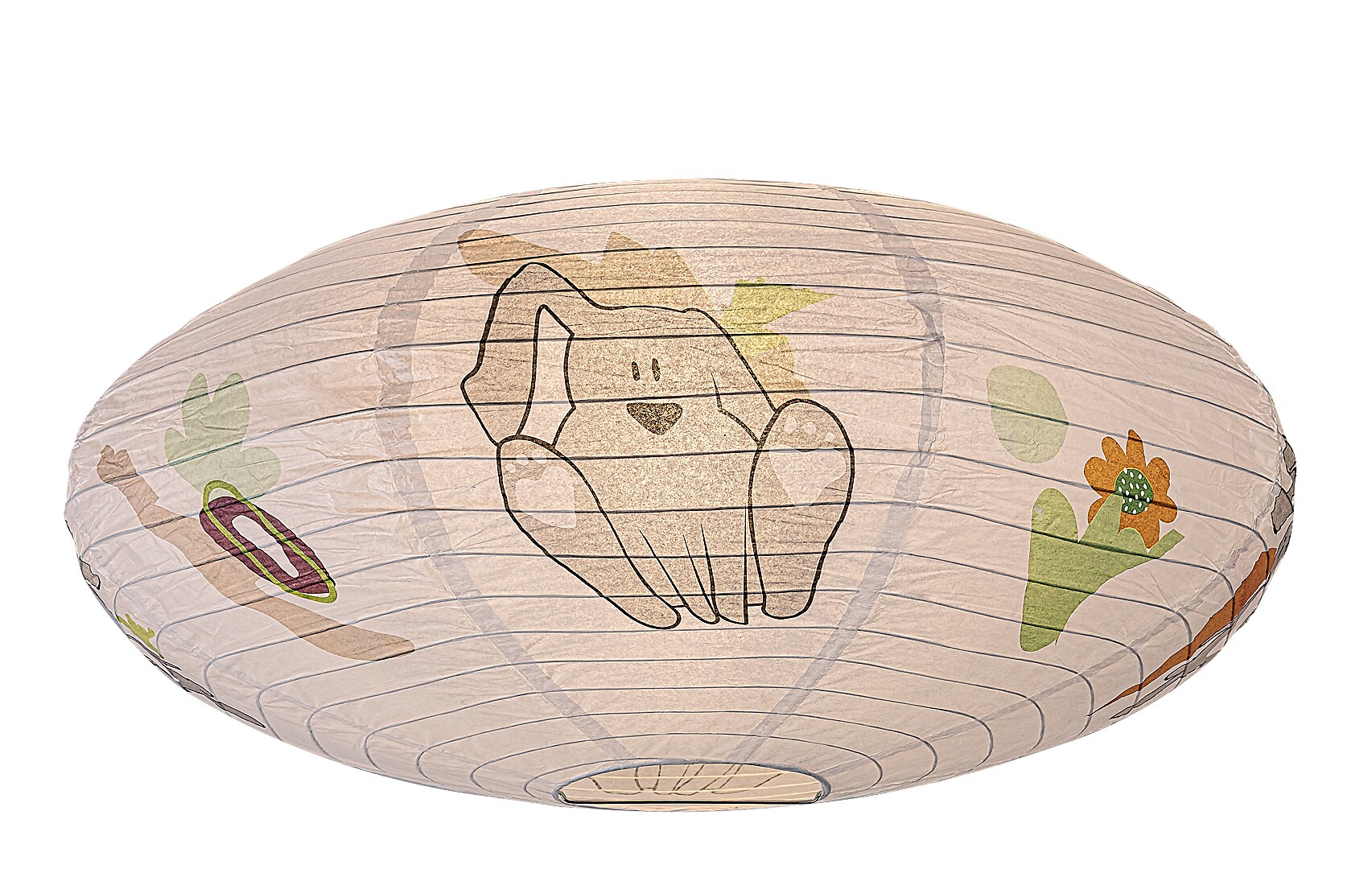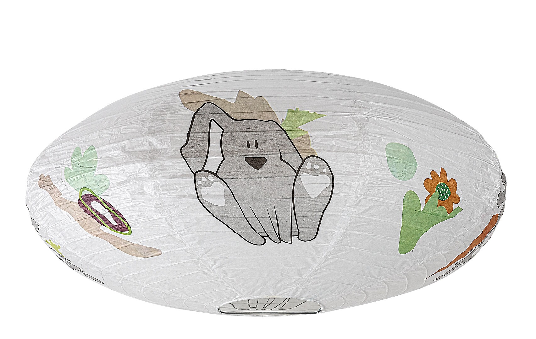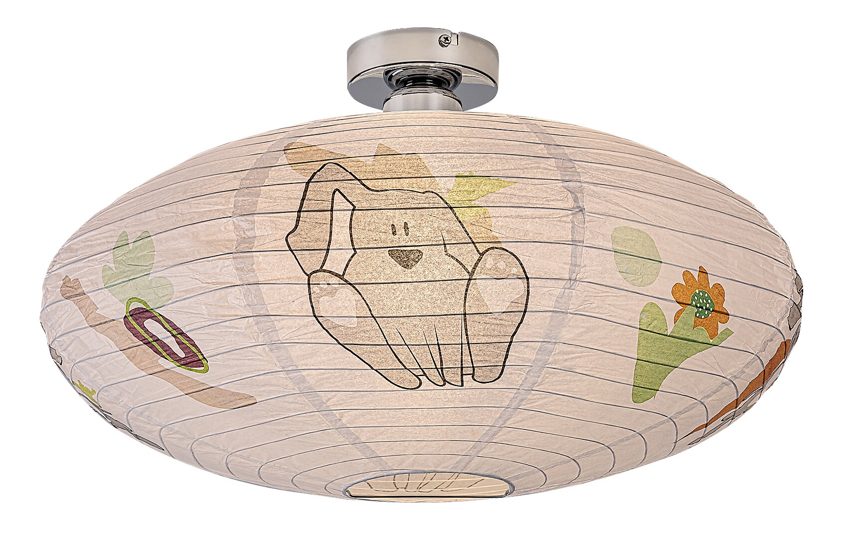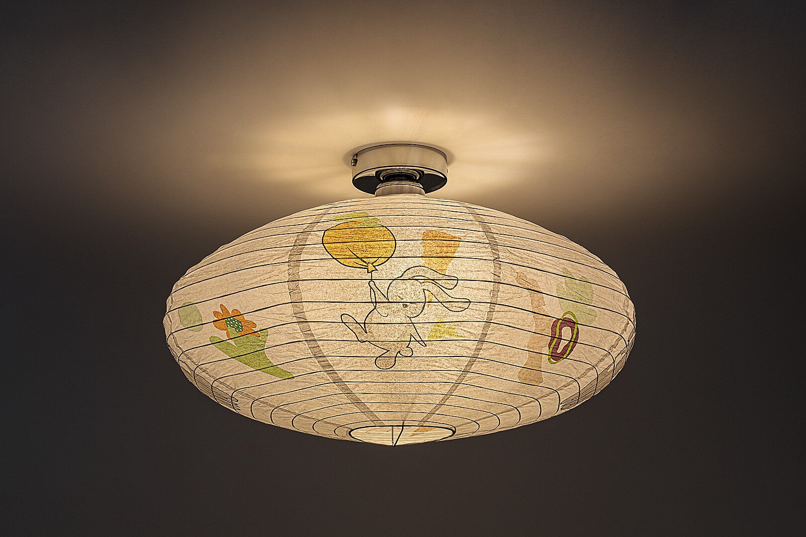 Lampa de tavan din hârtie pentru copii Rabalux Hopply este un model conceput de Rabalux. Este recomandată celor care doresc să facă camera copiilor și mai primitoare cu motive drăguțe și vesele. Lampa are o formă rotunjită și aplatizată, este realizată din hârtie și decorată cu un model adorabil cu iepuraș și balon, care cu siguranță va cuceri inima ocupantului camerei. Culorile predominante ale motivelor sunt nuanțele de portocaliu, maro și gri, care sunt plăcute și liniștitoare pentru ochi și radiază căldură. Lampa pentru copii poate fi utilizată cu un singur bec cu o putere de până la 40 W. Dacă dorești să îmbunătățești atmosfera confortabilă și intimă, alege un bec care emite lumină albă caldă. Lampa pentru camera copiilor este furnizată fără soclu și sursă de lumină.