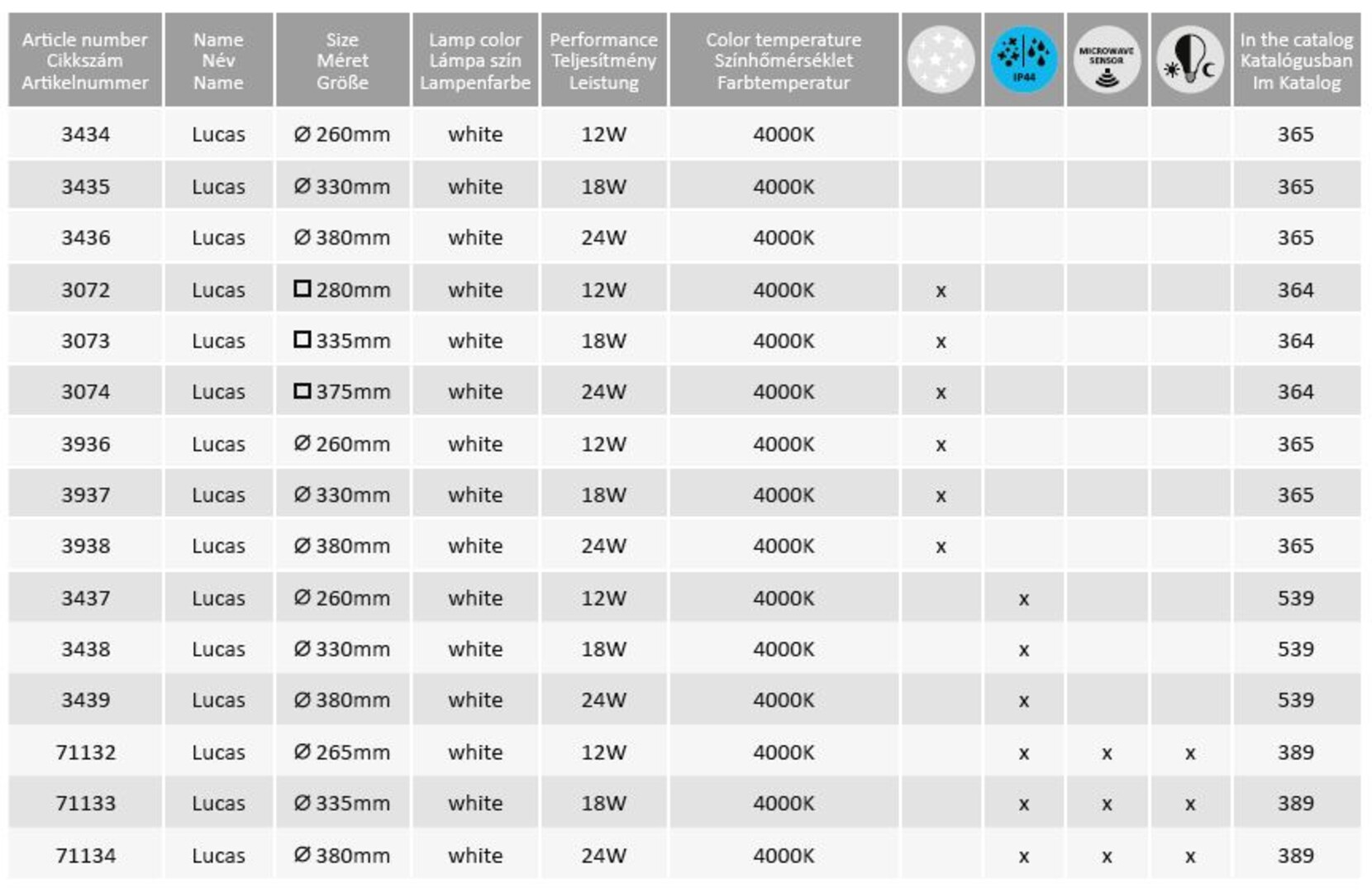Plafoniera Lucas, cu design funcțional, va fi un adaos practic adus mobilierului din livingul modern, dormitor sau birou. Mulțumită designului simplu și clar și culorii albe, se contopește aproape imperceptibil cu nuanța deschisă a tavanului. Acest model pătrat cu colțuri rotunjite este realizat din metal și plastic. Aspectul lămpii, care strălucește cu o lumină alb natural și arată bine datorită simplității sale, devine și mai atractiv printrun efect înstelat. Lucas are încorporată o sursă luminoasă LED care economisește energia, cu o putere de 18W, o intensitate luminoasă de 1.350 lumeni și o temperatură de culoare de 4,000K. Durata de viață a sursei de lumină este de 25.000 de ore. Dimensiunile plafonierei Lucas sunt de 335x335mm, distanța față de tavan de 65mm. Pentru acest model excelent vă oferim o garanție de 5 ani.