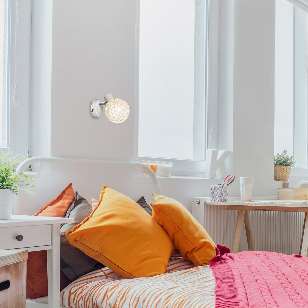 Spotul Hazel, cu stil nordic, va aduce o adiere proaspătă în casa Dvs., cu aspectul său jucăuș. Corpul metalic, alb mat, este complimentat de un abajur rotund, deschis la culoare, din hârtie și sfoară, care fac din Hazel un adaos minunat atât pentru un interior în culori pastel, cât și peuntru unul în culori vii. Puteți să-l amplasați în living sau în dormitor, sau pe peretele din hol. Spotul Hazel poate fi folosit doar cu o singură sursă luminoasă care economisește energia, de până la 15 W, tip de soclu: E14. Dacă vreți să creați o atmosferă plăcută, intimă, alegeți o sursă de iluminat alb cald. Dimensiunile lămpii cu comutator sunt următoarele: lățime 100 mm, înălțime 140 mm, distanță de la perete 160 mm. Spotul Hazel se livrează fără sursă luminoasă.