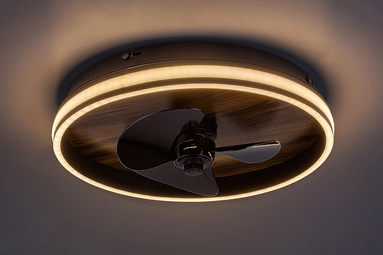 Plafoniera Faustine cu ventilator poate fi o alegere practică și versatilă pentru camera noastră de zi modernă. Lampa neagră metalică este completată de o placă decorativă din furnir și de un abajur din plastic transparent. Faustine are o sursă de lumină LED încorporată cu o putere de 30 W, o luminozitate de 1000 de lumeni cu abajur, 2860 de lumeni fără abajur și cu o durată de viață de 20.000 ore. Temperatura de culoare a plafonierei poate fi reglată între 3000 și 6500 K. Alte dotări suplimentare includ luminozitate reglabilă, funcții de memorie și temporizator, care, la fel ca temperatura de culoare, pot fi controlate prin telecomandă. Motorul ventilatorului încorporat cu trei palete negre are o putere de 40 W, o turație de 670, 920 sau 1070 rpm și un nivel de zgomot de 53, 56 sau 59 dB, în funcție de turație. Ventilatorul este potrivit pentru răcirea unei încăperi de până la 15 m2. Faustine are următoarele dimensiuni: diametru 470 mm, diametru de instalare 470 mm, distanța față de tavan 130 mm.