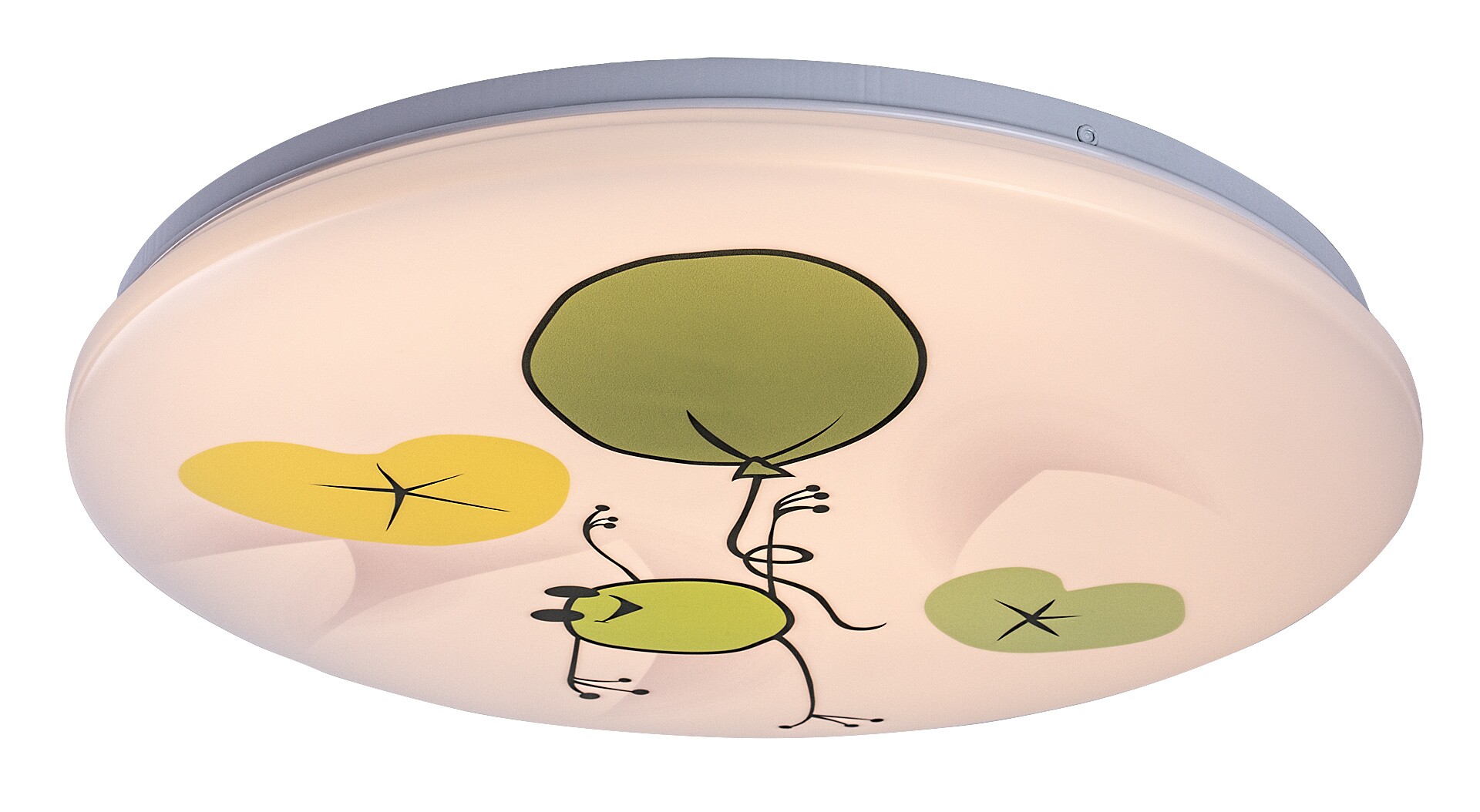 Plafoniera pentru copii Rabalux Froggo este un model creat de Rabalux. Este ideală pentru cei care caută o plafonieră LED colorată și cu durată lungă de viață pentru camera copiilor. Lampa are o formă rotundă, un suport metalic și un abajur din plastic decorat. Abajurul alb este decorat cu un motiv amuzant cu broscuță și baloane, garantat să înveselească mereu micuțul locatar al camerei. Culorile principale ale modelului sunt verde și galben, care sunt proaspete și vesele, potrivindu-se perfect oricărei camere de copil. Lampa pentru copii are o sursă de lumină LED integrată care emite o lumină alb cald pentru o atmosferă confortabilă și intimă. Datorită tehnologiei LED, plafoniera pentru camera copiilor se caracterizează printr-un consum eficient de energie și o durată de viață excepțională.