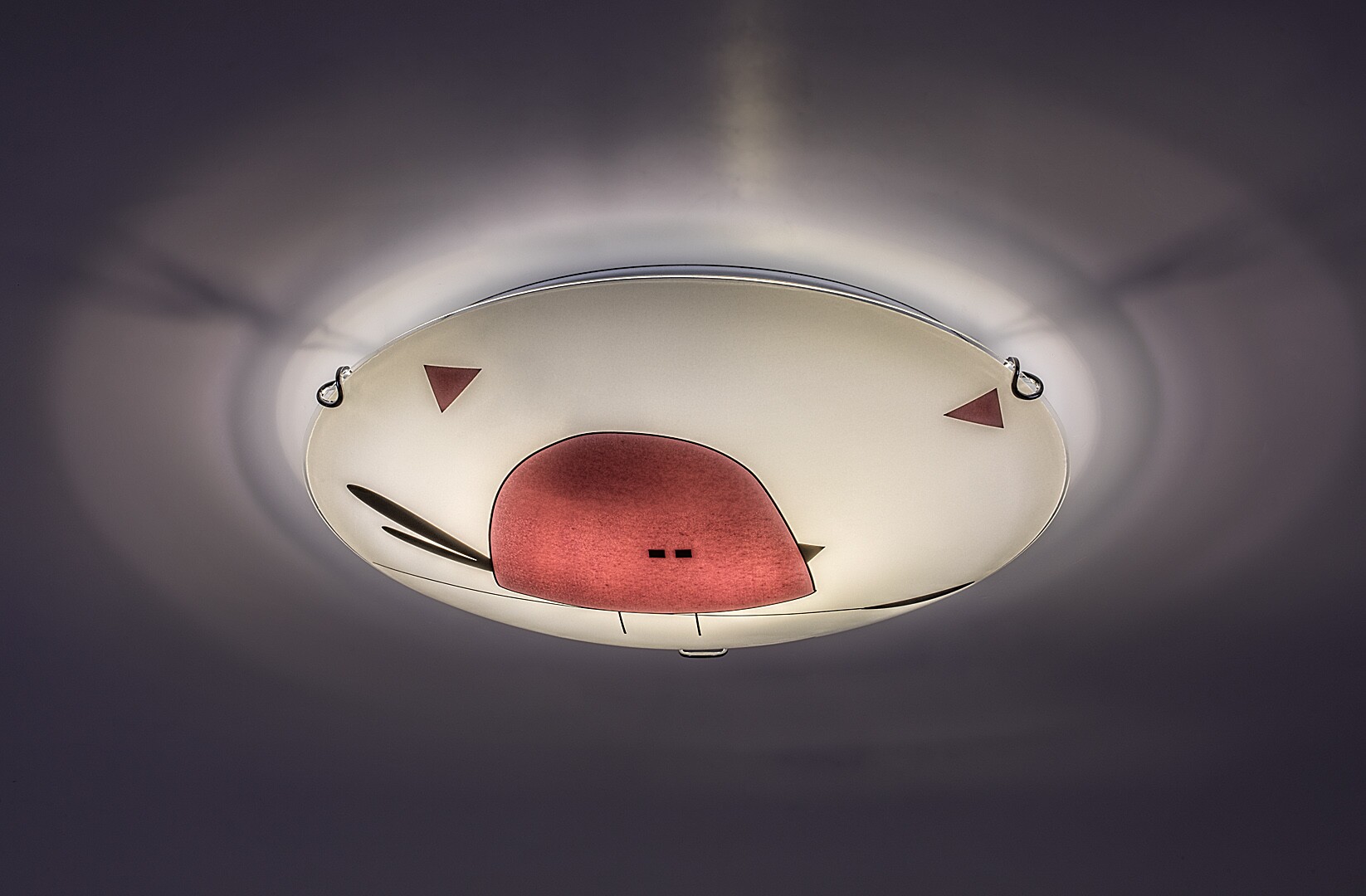 Plafoniera pentru copii Rabalux Fowly este un model creat de Rabalux. Este ideală pentru cei care doresc să facă camera copiilor și mai primitoare, cu motive drăgălașe și vesele. Lampa este realizată în culoare albă, cu un suport metalic rotund și un abajur din sticlă. Este decorată cu un motiv fermecător, stilizat, cu pasăre de culoare mov, care va cuceri imediat inimile atât ale celor mici, cât și ale celor mari. Lampa pentru camera copiilor funcționează cu două becuri, fiecare de până la 60 W. Tipul de soclu este E27. Dacă dorești să accentuezi atmosfera intimă și confortabilă, alege surse de lumină cu lumină alb cald. Plafoniera pentru copii se livrează fără surse de lumină.