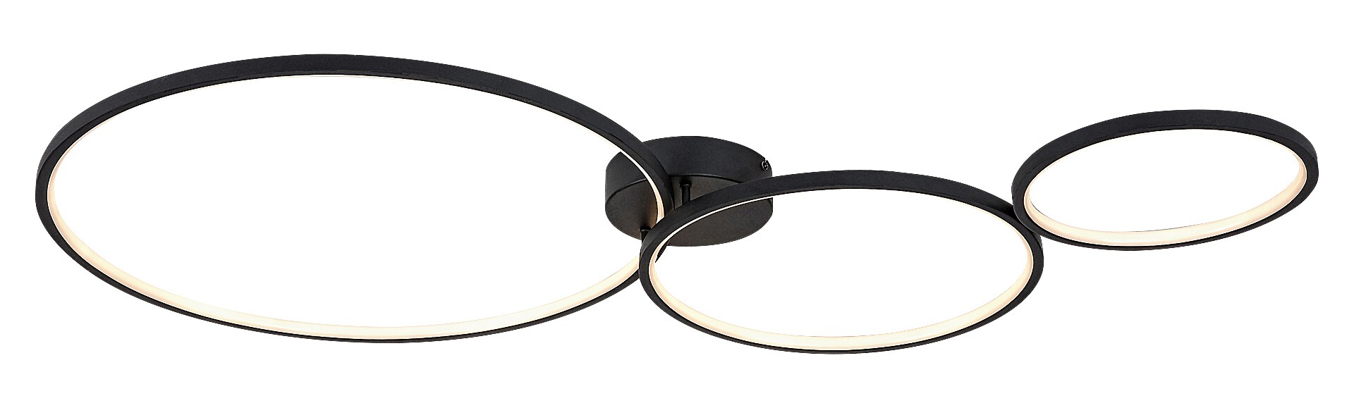 Plafoniera Rábalux Formand este recomandată pentru cei care caută un model cu stil modern, spectaculos, care se dovedește a fi în același timp și o alegere perfectă în ceea ce privește funcționalitatea. Aspectul unic al plafonierei LED este asigurat prin cele trei elemente de lampă rotunde interconectate, cu diametre diferite. Fiecare dintre aceste elemente sunt fabricate din metal și au culoare neagră elegantă, iar abajururile sunt fabricate din plastic de culoare albă. Sursa de lumină LED încorporată emite o lumină albă caldă, care emană o atmosferă intimă, confortabilă și primitoare. Dispunând de un design creativ, acest model este ideal pentru camera de zi, sufragerie sau dormitor. Datorită dimensiunilor sale mari plafoniera este ideală și pentru a fi instalată în incinte mai spațioase. Plafoniera este echipată cu tehnologie LED încorporată, ceea ce asigură o funcționare eficientă din punct de vedere energetic și o durată de viață deosebit de lungă.