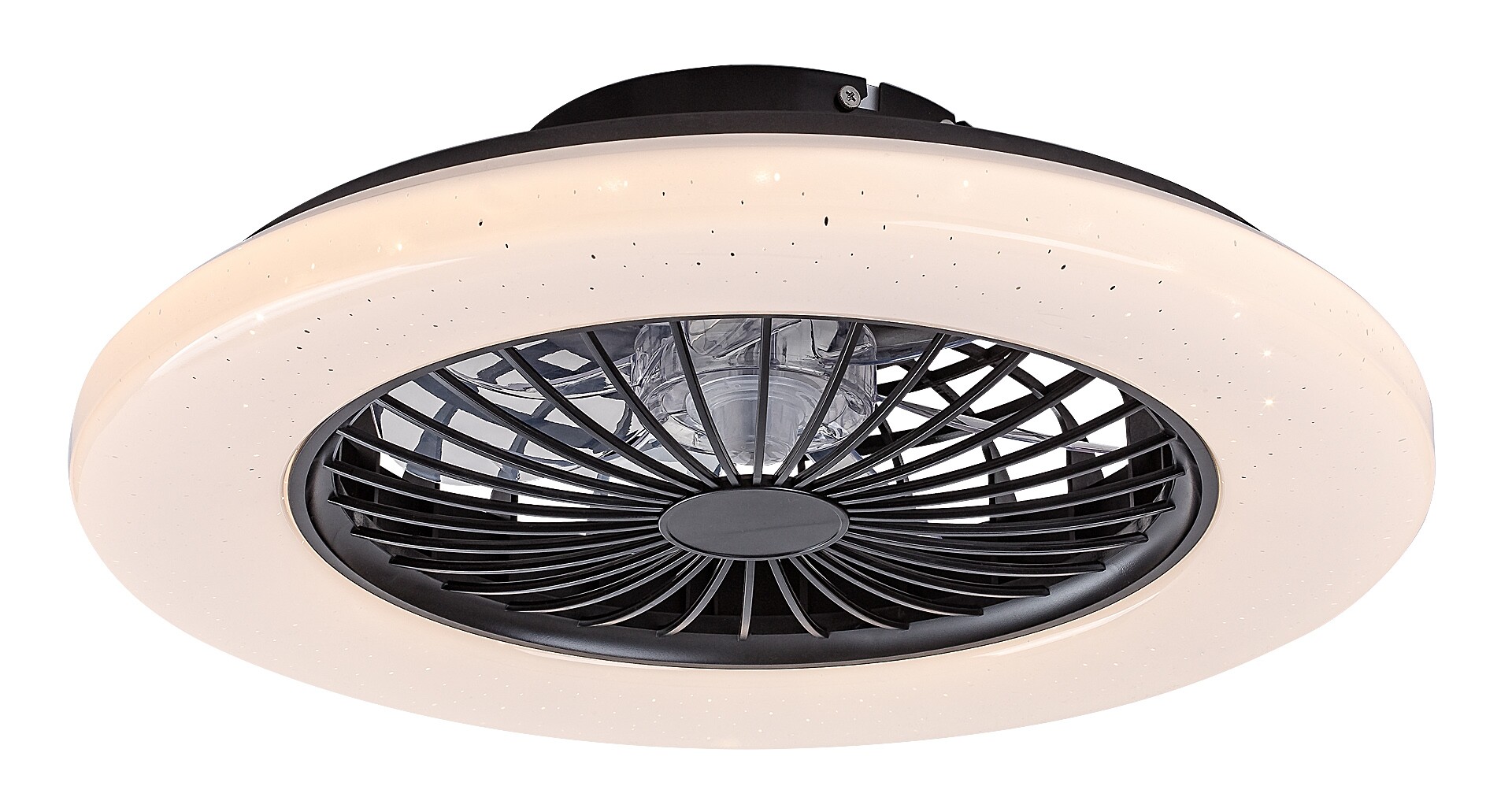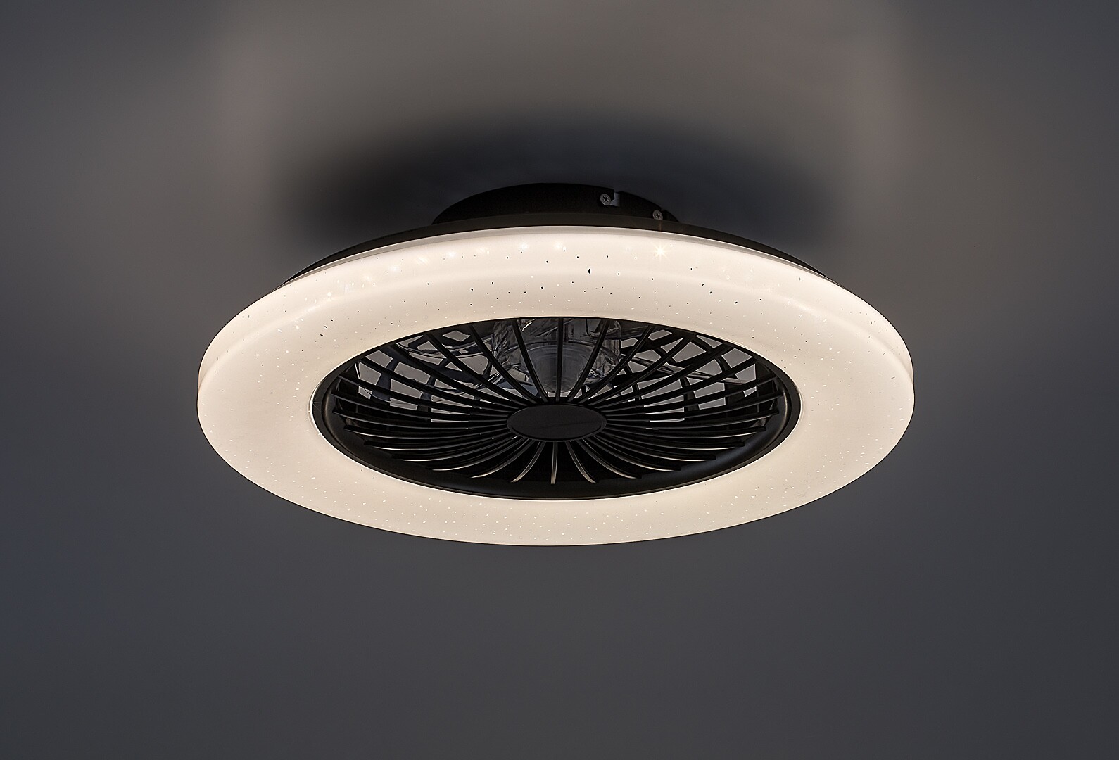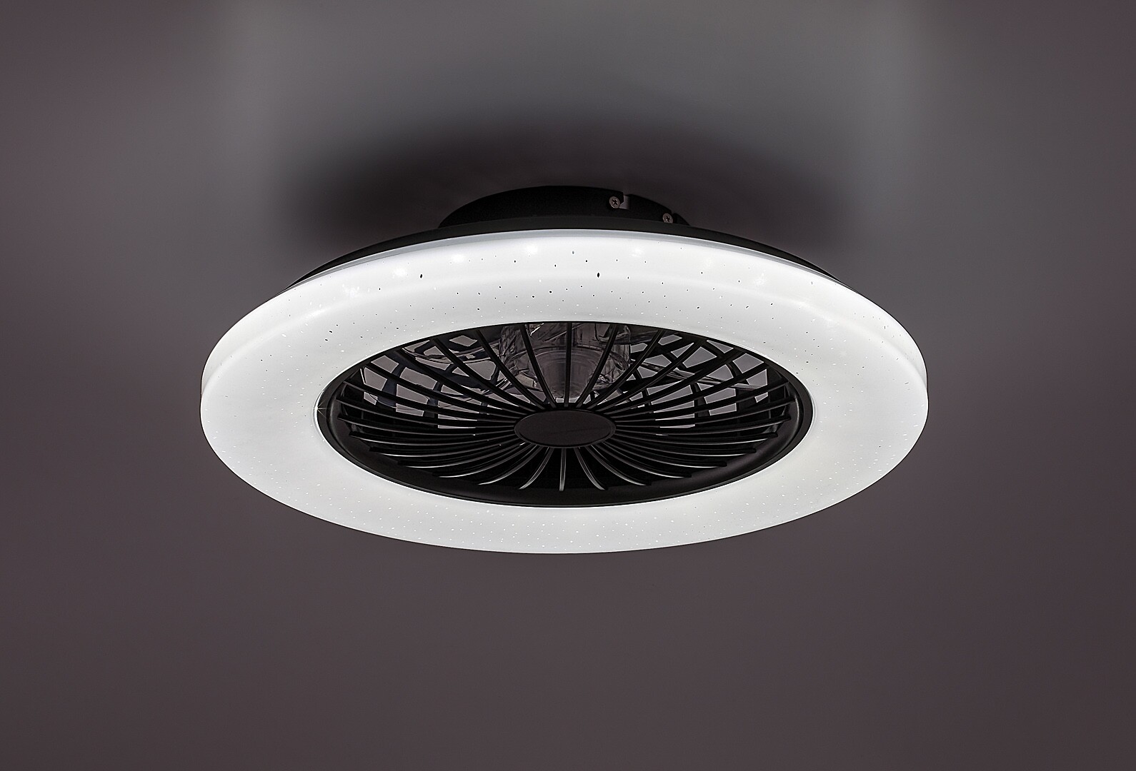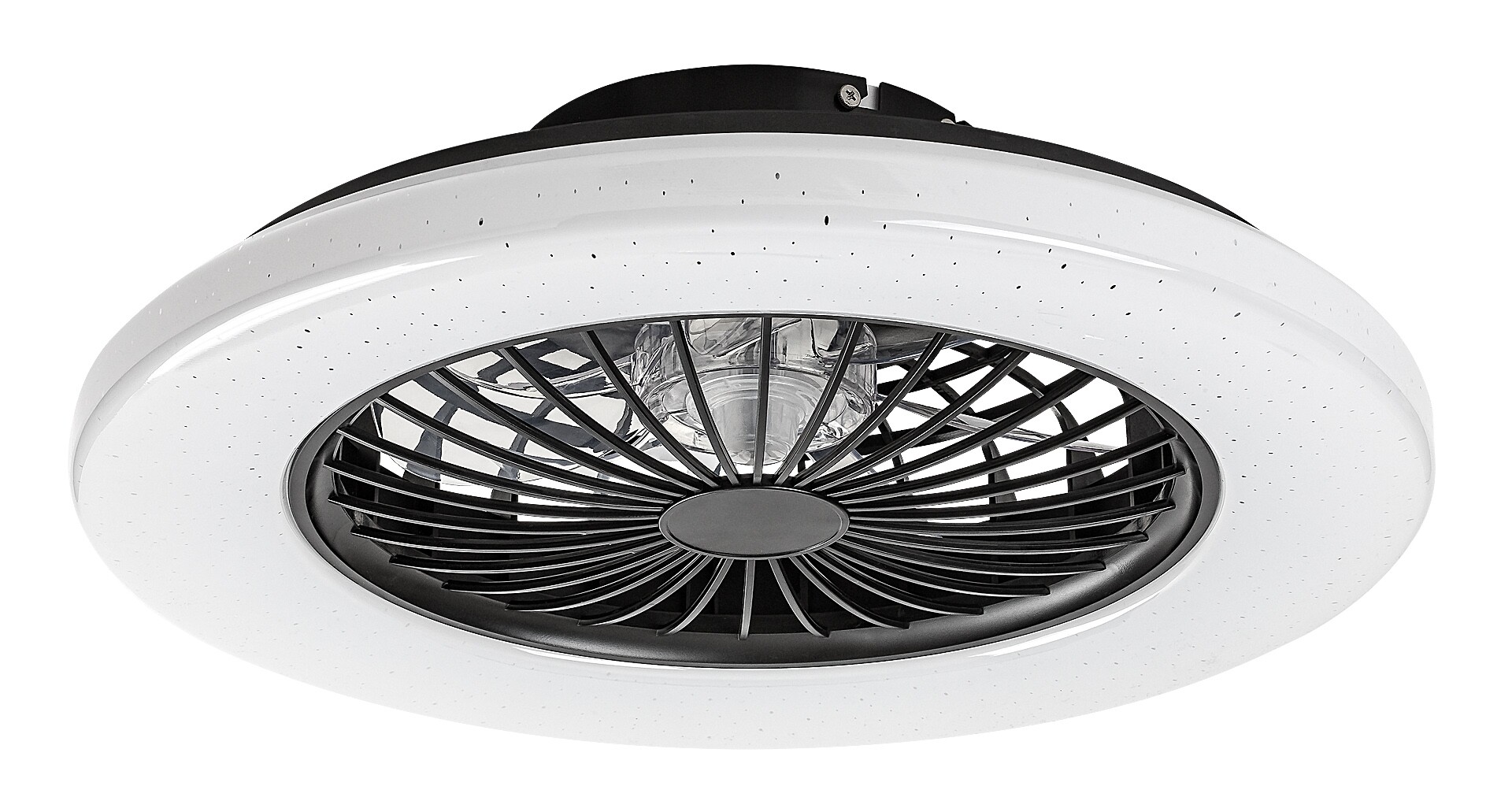 Lampa de tavan cu ventilator Rabalux Dalfon 2 este alegerea ideală pentru cei care caută un model versatil 2-în-1. Lampa are o sursă de lumină LED integrată și, pe lângă ventilator, dispune de alte funcții utile: luminozitatea și temperatura culorii pot fi reglate cu telecomanda, iar lampa are și funcții de memorie, temporizator și lumină de noapte. Temperatura culorii poate fi ajustată și printr-un întrerupător de perete. Corpul este realizat din metal și plastic negru. Abajurul este din plastic alb, cu un elegant efect de stele pe suprafață. Viteza ventilatorului este reglabilă, iar puterea este suficientă pentru încăperi de până la 33 m². Lampa de tavan inteligentă cu ventilator se caracterizează printr-un consum redus de energie și o durată lungă de viață. Este recomandată în principal pentru sufragerii moderne, dormitoare și birouri.