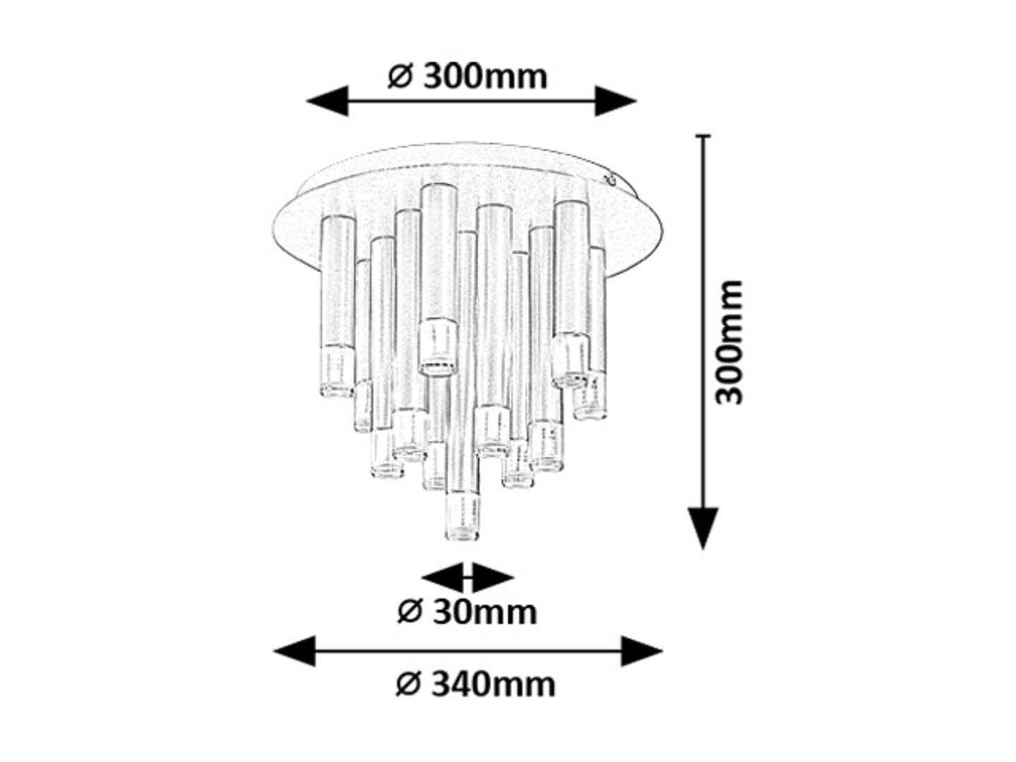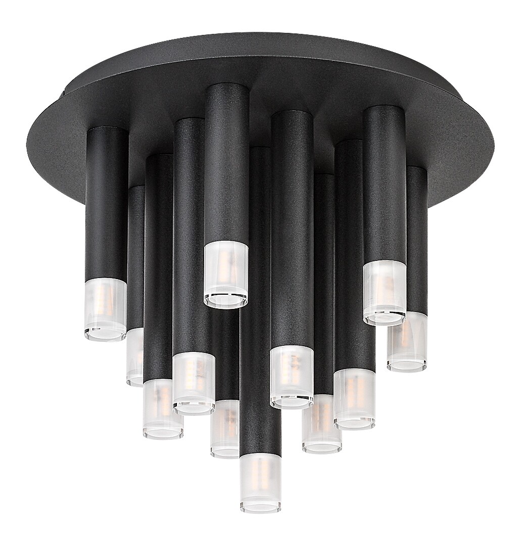 Plafoniera Rabalux Ramira este recomandată în special celor care caută o lampă modernă, cu un aspect inedit, ce poate fi integrată cu ușurință în aproape orice încăpere din locuință. Acest model spectaculos este realizat din metal, într-o stilată culoare neagră. Capetele lămpii sunt completate de abajururi transparente din acril. Lampa se montează pe tavan cu ajutorul unei baze decorative rotunde de dimensiuni mari, combinată cu elemente cilindrice de diferite lungimi, care amintesc de țurțuri sau, mai exact, de stalactite suspendate. Plafoniera este ideală pentru sufragerie, bucătărie, dining sau dormitor. Funcționează cu 13 becuri, fiecare de maximum 5 W. Tipul de soclu este G9. Datorită numărului mare de surse de lumină, lampa oferă o intensitate luminoasă ridicată. Se livrează fără surse de lumină.