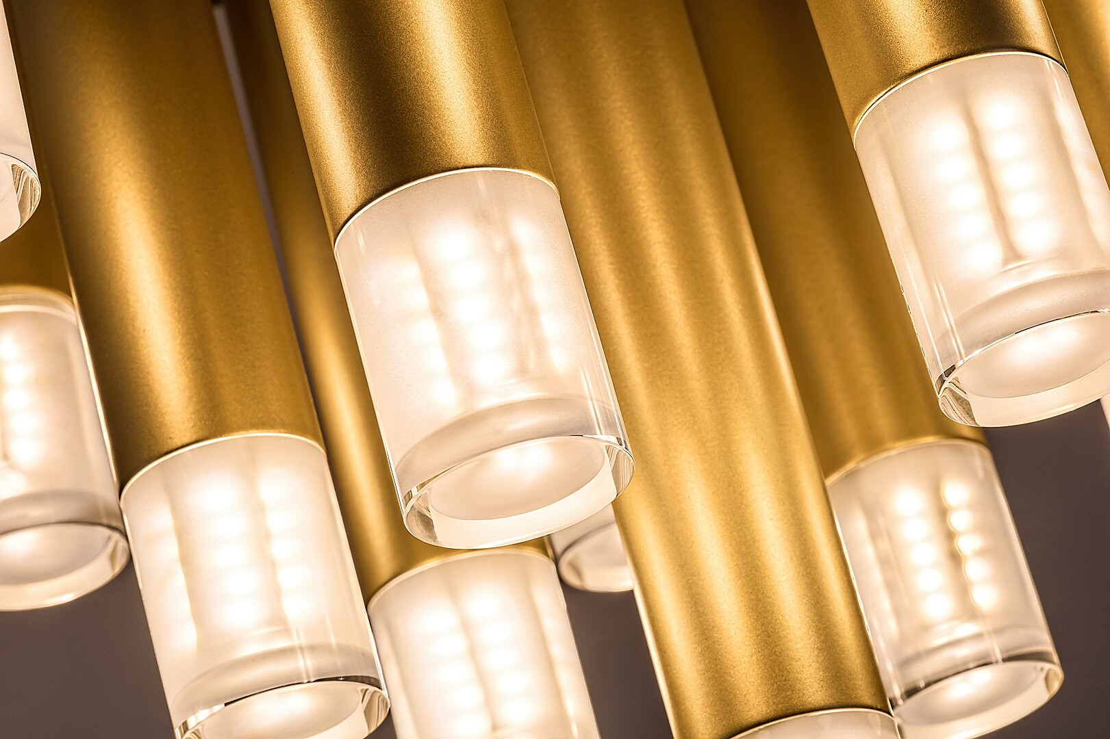 Plafoniera Rabalux Ramira este recomandată în special celor care caută o lampă modernă, cu un aspect unic, ce poate fi integrată cu ușurință în aproape orice încăpere a locuinței. Acest model spectaculos este realizat din metal, într-o stilată culoare aurie. Capetele lămpii sunt completate de abajururi transparente din acril. Lampa se fixează pe tavan cu ajutorul unei baze decorative rotunde de dimensiuni mari, combinată cu elemente cilindrice de diferite lungimi, care amintesc de țurțuri sau, mai exact, de stalactite suspendate. Plafoniera este ideală pentru sufragerie, bucătărie, dining sau dormitor. Funcționează cu 13 becuri, fiecare de maximum 5 W. Tipul de soclu este G9. Datorită numărului mare de surse de lumină, lampa oferă o intensitate luminoasă semnificativă. Se livrează fără surse de lumină.