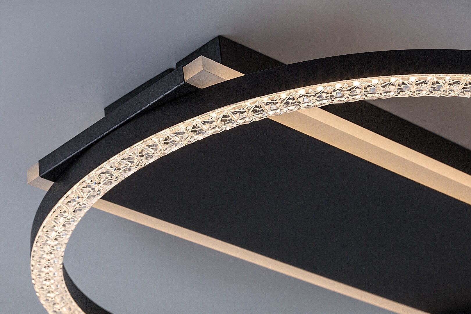 Plafoniera Rabalux Kerstin este recomandată celor care consideră importantă eficiența energetică, pe lângă un aspect modern și curat. Această lampă LED este realizată din metal, într-o elegantă combinație de negru și alb. Structura este de culoare neagră, iar abajurul din acril este alb. Lampa este compusă dintr-un element rotund și unul pătrat: abajurul elementului inelar este evidențiat de o suprafață cu efect cristalin, în timp ce celălalt element, de formă dreptunghiulară, trece prin inel și este conectat direct la baza decorativă. Lampa are o sursă de lumină LED integrată, care emite o lumină alb cald, accentuând o atmosferă intimă și confortabilă. Este ideală pentru sufragerie, dining sau dormitor. Datorită tehnologiei LED integrate, acest model se remarcă printr-un consum eficient de energie și o durată lungă de viață.