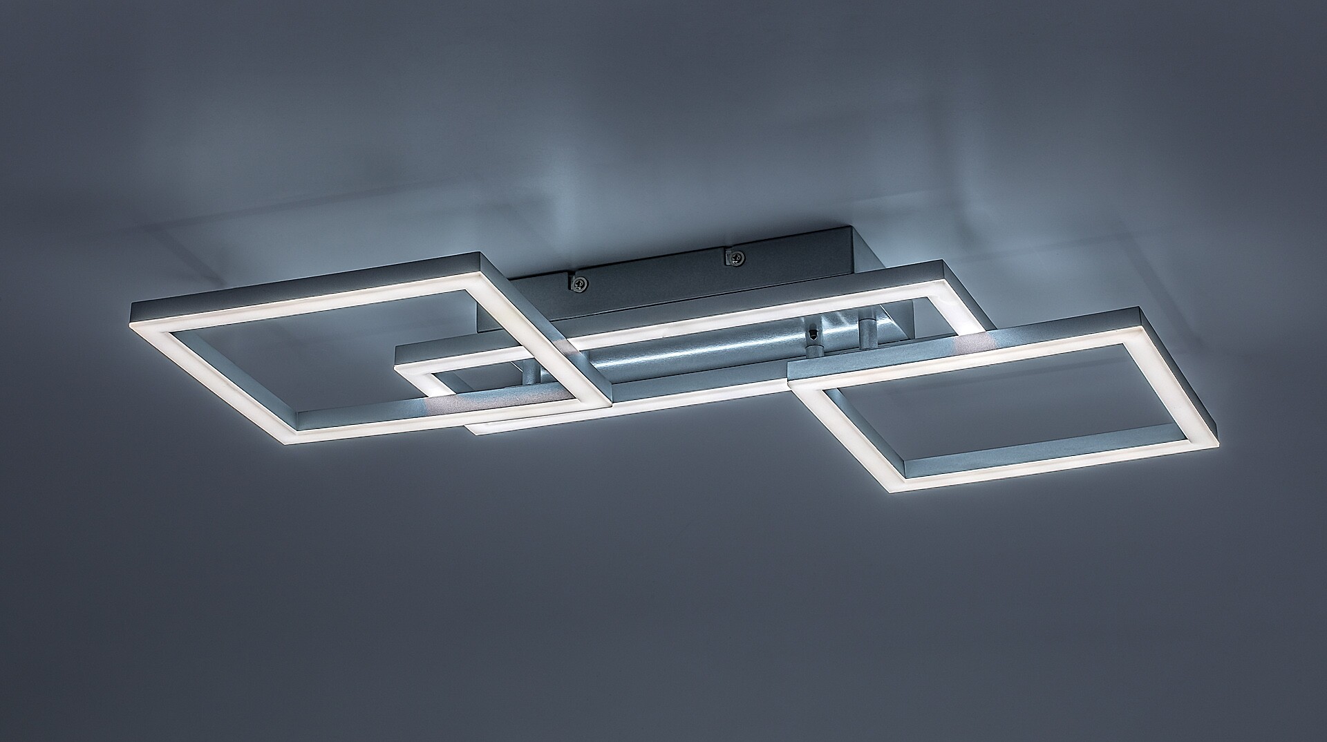 Plafoniera Rabalux Ellinor este recomandată celor care caută un model inteligent cu luminozitate ridicată. Această lampă LED modernă și spectaculoasă este realizată din metal de culoare cromată, completată de un abajur din plastic alb. Structura este alcătuită din trei elemente pătrate intersectate și se fixează pe tavan cu ajutorul unei baze decorative dreptunghiulare. Dispune de o sursă de lumină LED integrată, al cărei temperatura de culoare poate fi ajustată prin telecomandă sau printr-un întrerupător de perete. În plus, există alte funcții inteligente care pot fi controlate prin telecomandă, cum ar fi ajustarea luminozității, funcțiile de memorie, temporizator și lumină de veghe. Intensitatea luminoasă mare a acestui model îl face alegerea perfectă pentru încăperi mai spațioase. Este ideală pentru sufragerii, dining sau dormitoare moderne. Datorită tehnologiei LED, se remarcă printr-un consum eficient de energie și o durată lungă de viață.