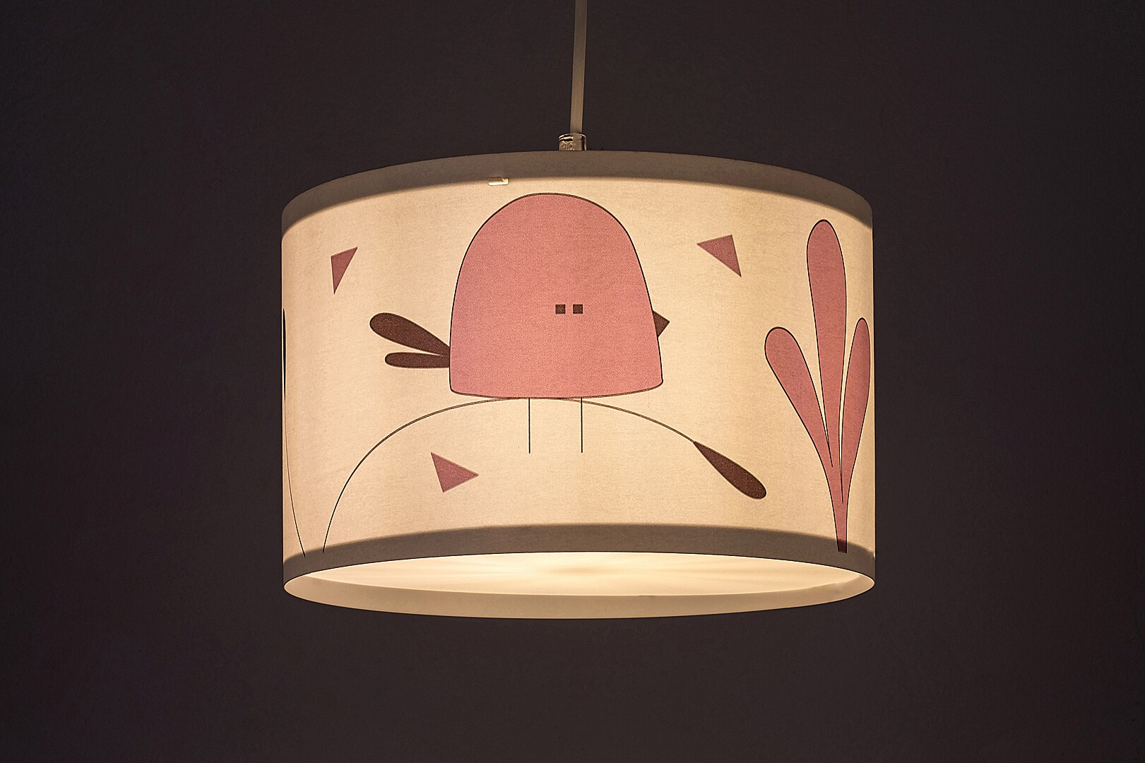 Lampa suspendată pentru copii Rabalux Fowly este un model creat de Rabalux. Este ideală pentru cei care doresc să facă camera copiilor și mai primitoare cu motive drăguțe și vesele. Lampa suspendată este realizată în culoare albă, cu un corp din plastic și un abajur din material textil. Abajurul este cilindric, deschis în partea de jos și decorat cu un motiv fermecător de păsărică stilizată, de culoare mov. Lampa poate fi fixată de tavan cu ajutorul unei baze decorative mici, cilindrice. Poate fi utilizată cu un singur bec cu o putere de până la 40 W. Tipul de soclu este E27. Dacă dorești să creezi o atmosferă confortabilă și intimă, alege un bec care emite lumină albă caldă. Lampa suspendată pentru copii este livrată fără sursă de lumină.