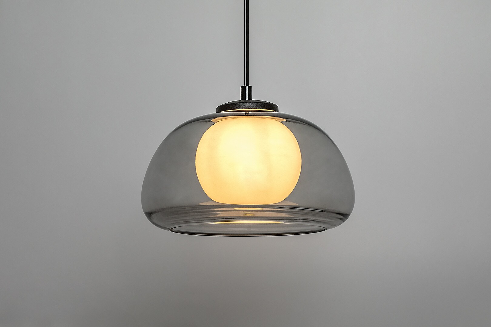 Lampa suspendată Rabalux Elowen este alegerea ideală pentru cei care caută o lampă suspendată modernă și universală, care poate fi instalată în aproape orice încăpere din casa lor. Această lampă plăcută vizual este atractivă datorită combinației de forme sferice și rotunjite: abajurul exterior translucid este realizat din sticlă fumurie și prezintă suprafețe ușor curbate. Dedesubt se află un abajur interior sferic din sticlă albă. Corpul lămpii este realizat din metal negru și poate fi fixat de tavan cu ajutorul unei baze decorative mici, rotunde. Lampa suspendată este recomandată pentru living, bucătărie, sufragerie și dormitor. Poate fi utilizată cu un singur bec cu o putere de până la 5 W. Tipul de soclu este G9. Lampa suspendată este furnizată fără sursă de lumină.