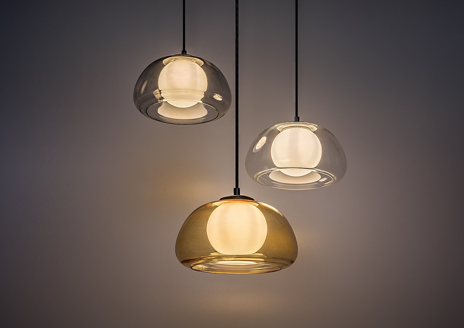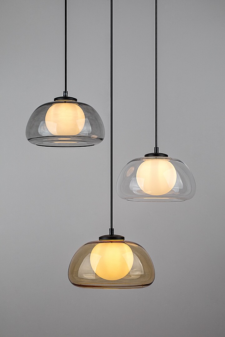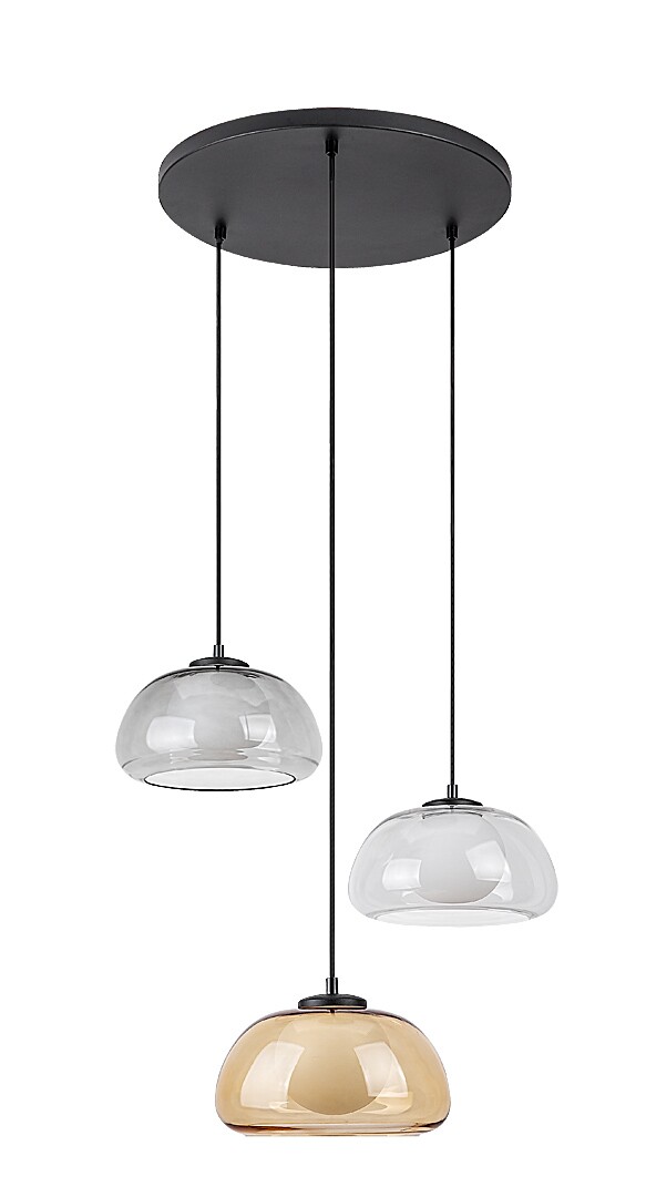 Lampa suspendată cu 3 becuri Rabalux Elowen este recomandată celor care caută o lampă modernă cu un aspect unic. Această lampă suspendată este atractivă datorită combinației de forme sferice și rotunjite: cele trei abajururi externe se caracterizează prin suprafețe ușor curbate, fiecare având dedesubt un abajur interior sferic din sticlă albă. Capetele de lampă sunt suspendate la înălțimi diferite și au abajururi externe de culori diferite: unul este translucid, unul este din sticlă fumurie și altul din sticlă de culoare chihlimbar. Corpul lămpii este realizat din metal negru și poate fi fixat de tavan cu ajutorul unei baze decorative mari, rotunde. Lampa suspendată este recomandată pentru living, bucătărie, sufragerie și dormitor. Poate fi utilizată cu trei becuri, fiecare cu o putere de până la 5 W. Tipul de soclu este G9. Lampa suspendată este furnizată fără surse de lumină.