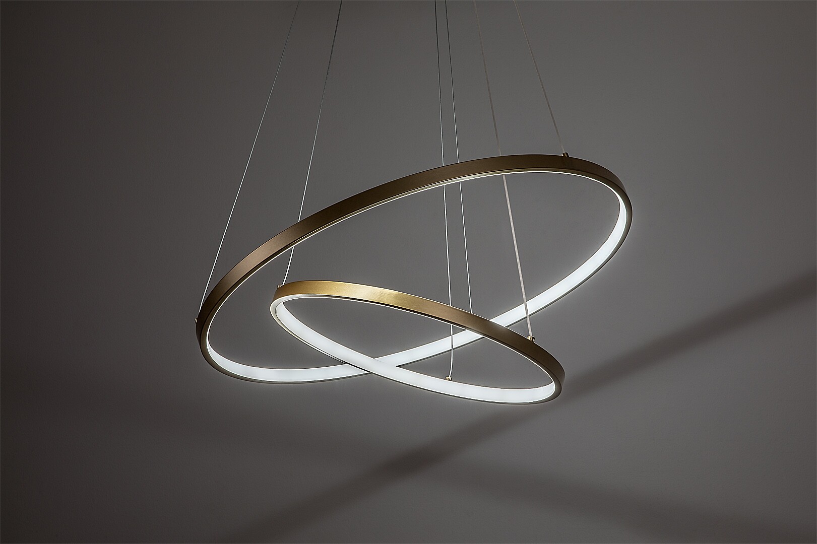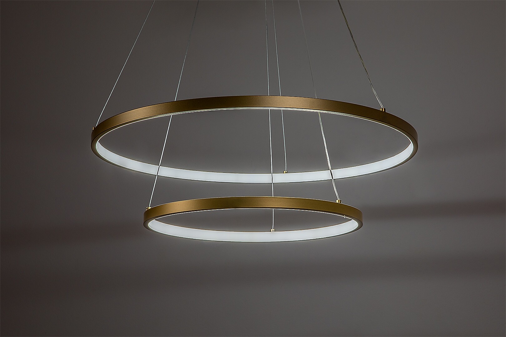 Lampa suspendată Rabalux Beliza cu 2 becuri este recomandată celor care apreciază atât funcționalitatea, cât și un design creativ și atrăgător. Lampa suspendată modernă este alcătuită din două elemente de formă rotundă și este realizată din metal de culoare aurie. Cele două inele au diametre diferite și pot fi poziționate după necesitate. Lampa emite lumină pe partea interioară a inelelor, iar abajururile sunt realizate din silicon alb. Lampa suspendată este completată de o bază decorativă rotundă de culoare aurie și cabluri metalice de culoare argintie. Aceasta dispune de o sursă de lumină LED încorporată care asigură o funcționare eficientă energetic și o durată lungă de viață. Luminozitatea și temperatura de culoare pot fi reglate prin telecomandă. Lampa suspendată inteligentă dispune, de asemenea, de o funcție de lumină de noapte. Este ideală pentru living, dining sau dormitor.