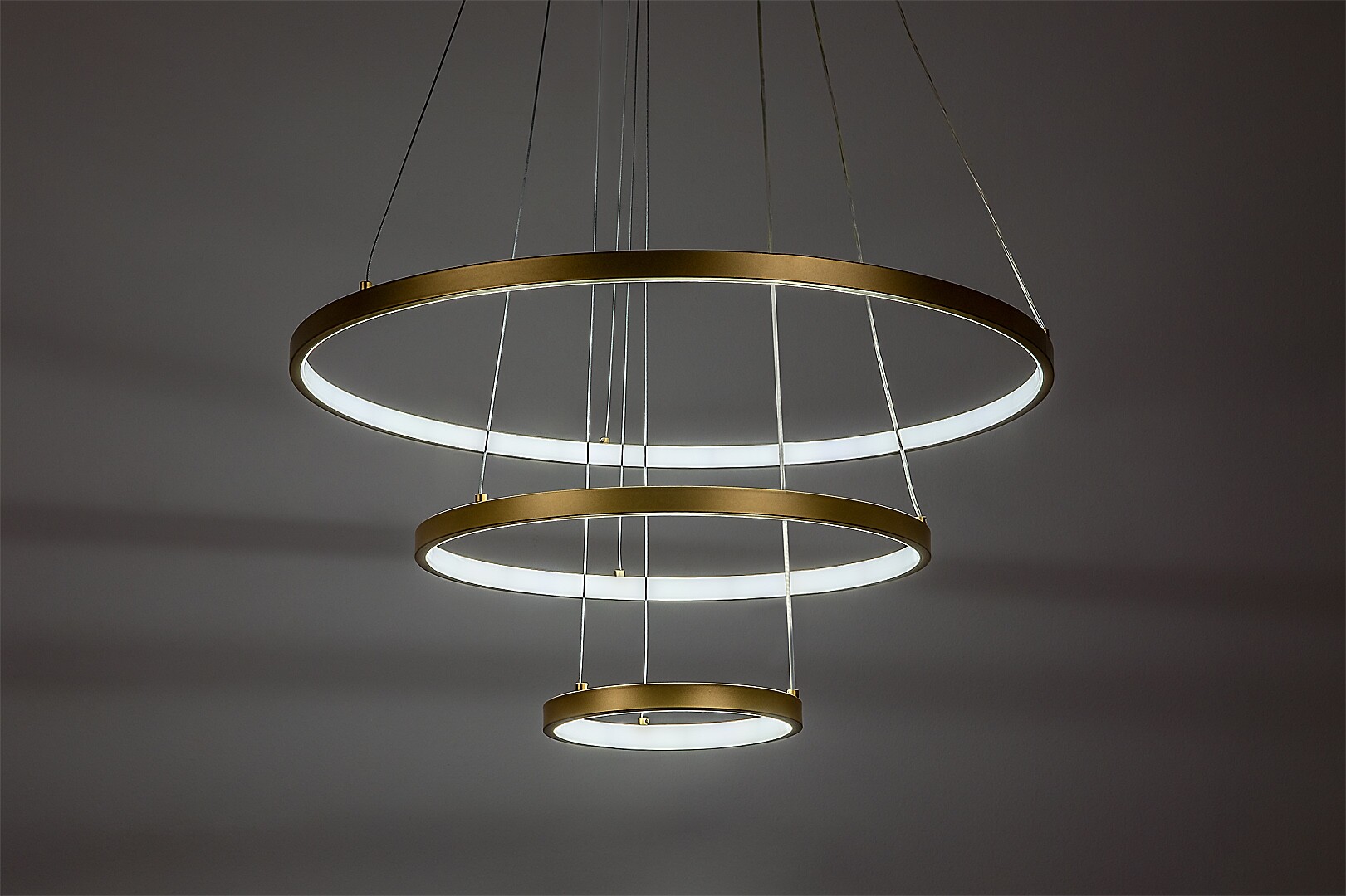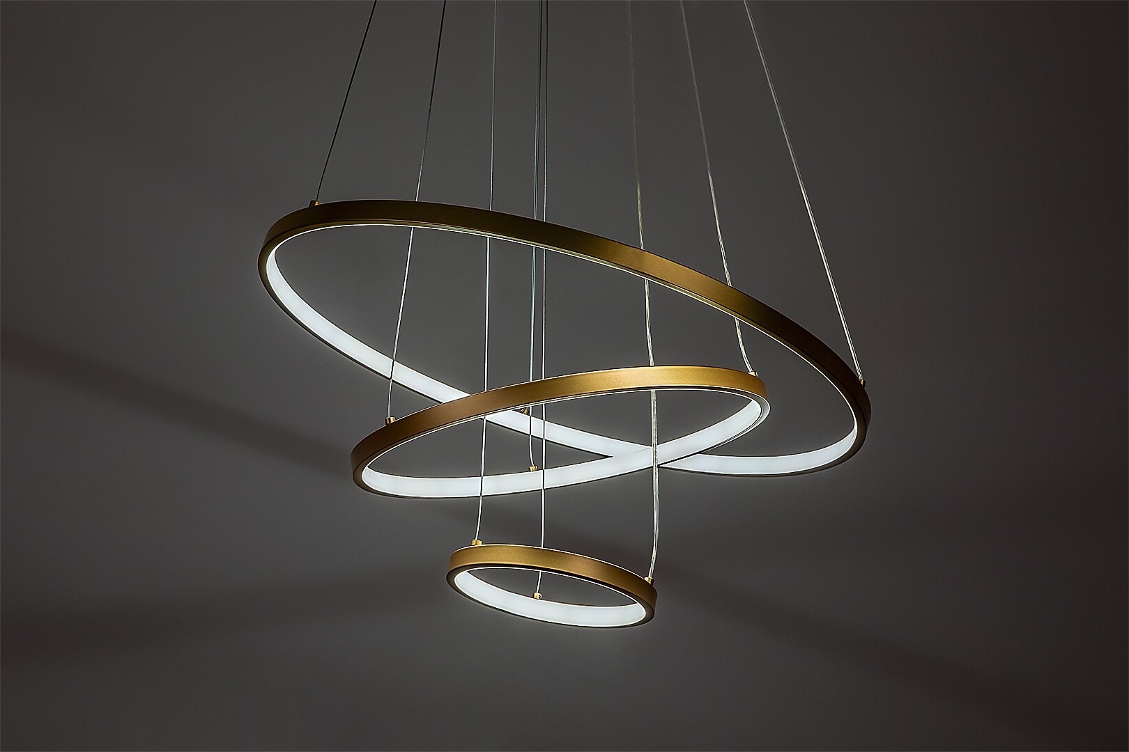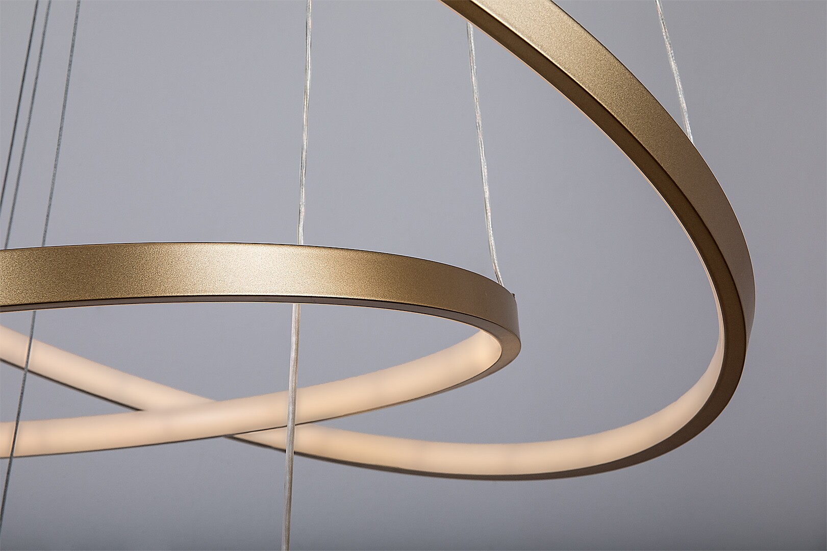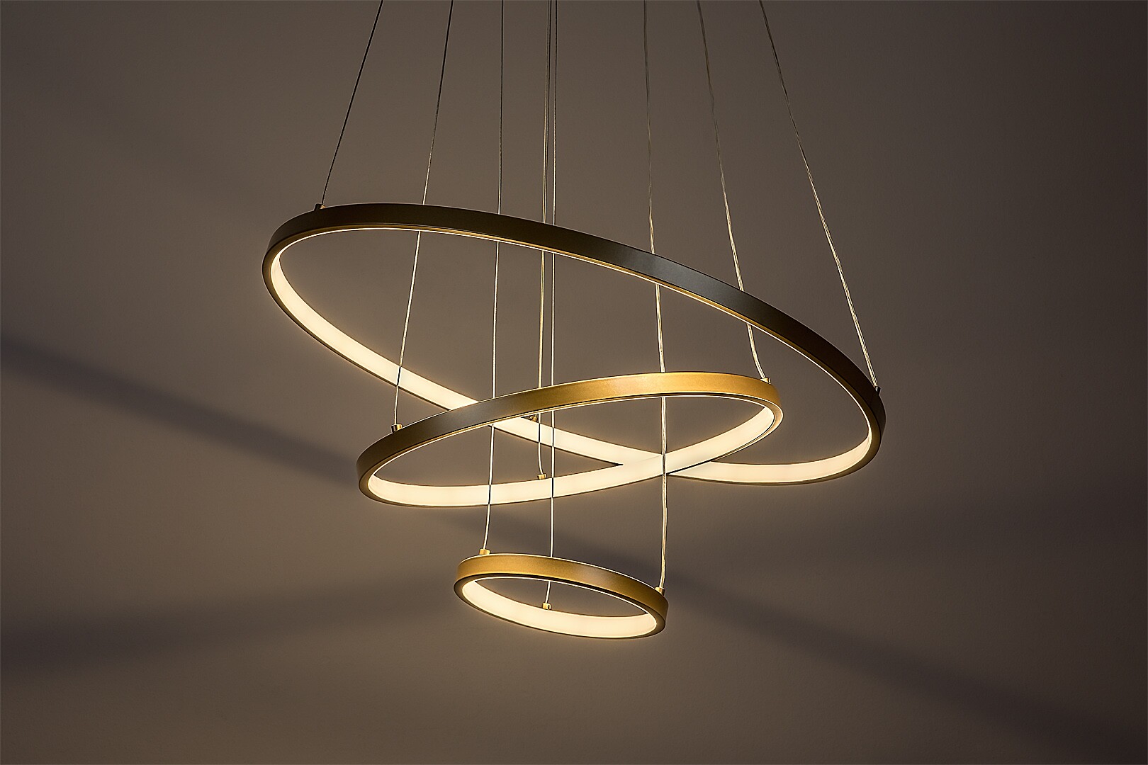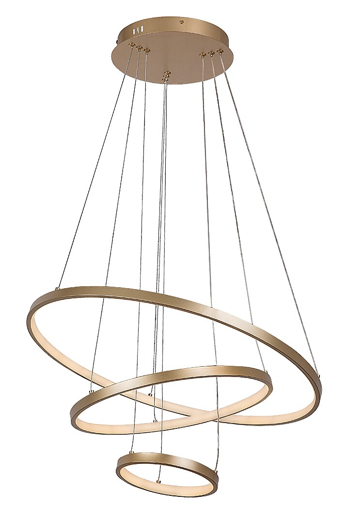 Lampa suspendată Rabalux Beliza cu 3 becuri este recomandată celor care apreciază atât funcționalitatea, cât și un design creativ și atrăgător. Lampa suspendată modernă este alcătuită din 3 elemente de formă rotundă, plasate unul sub celălalt, și este realizată din metal de culoare aurie. Inelele au diametre diferite și pot fi poziționate după dorință. Lampa emite lumină pe partea interioară a inelelor, iar abajururile sunt realizate din silicon alb. Lampa suspendată este completată de o bază decorativă rotundă de culoare aurie și cabluri metalice de culoare argintie. Aceasta dispune de o sursă de lumină LED încorporată care oferă o luminozitate excepțională, asigurând în același timp eficiență energetică și o durată lungă de viață. Luminozitatea și temperatura de culoare pot fi reglate prin telecomandă. Lampa suspendată inteligentă dispune, de asemenea, de o funcție de lumină de noapte. Este ideală pentru living, dining sau dormitor.