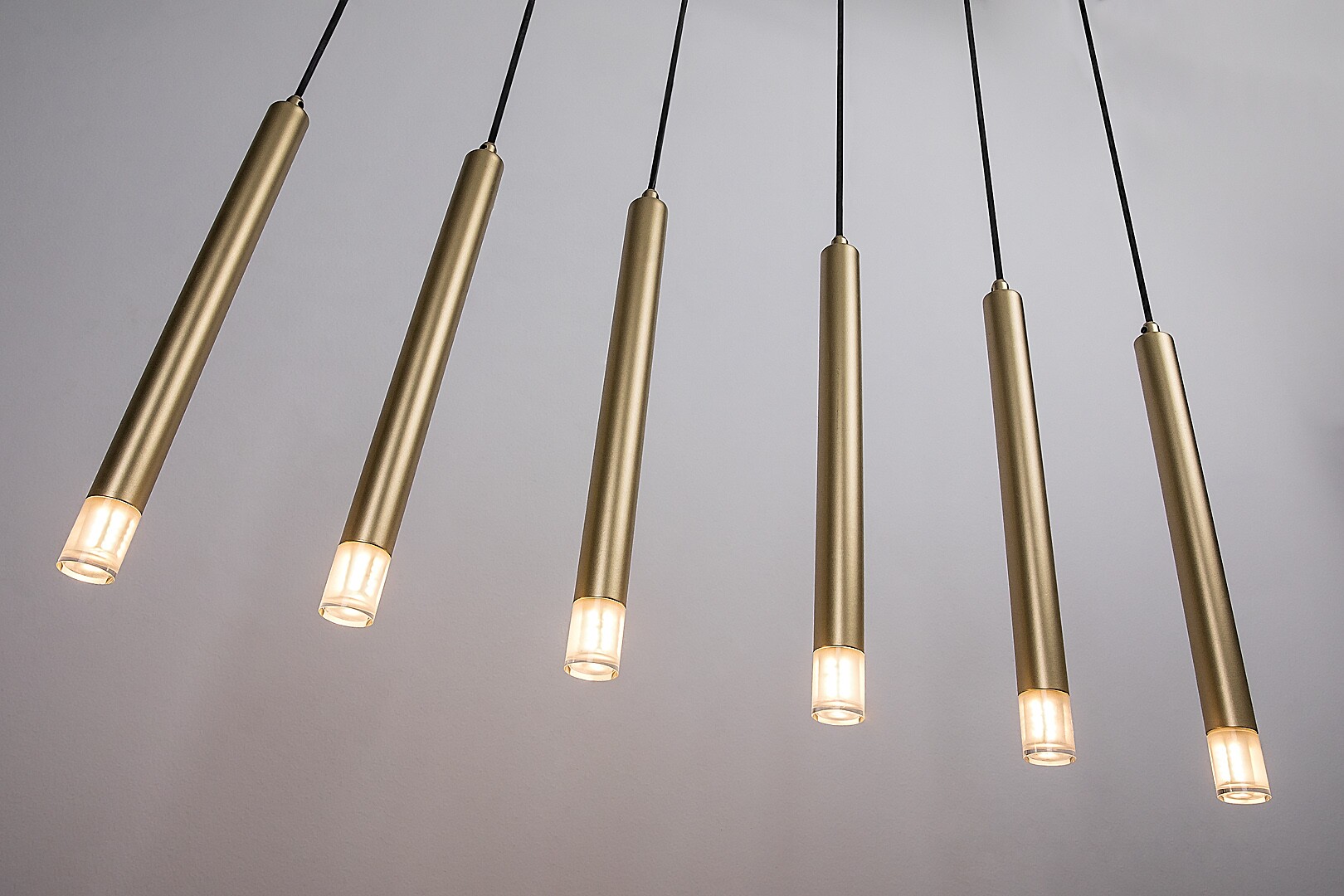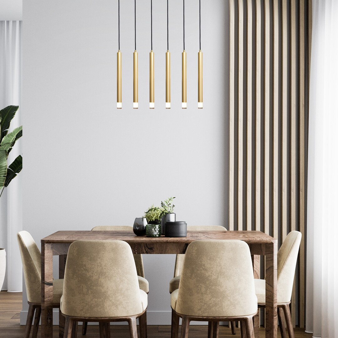 Lampa suspendată cu 6 becuri Rabalux Ramira este alegerea ideală pentru cei care caută o lampă suspendată modernă și minimalistă, care poate fi integrată cu ușurință în aproape orice încăpere din casa lor. Lampa este realizată din metal de culoare auriu elegant și este completată de abajururi transparente din acrilic și o bază decorativă lungă, pătrată, de aceeași culoare cu capetele lămpii. Capetele lămpii cu diametru mic sunt realizate într-o formă tubulară, cilindrică și sunt aranjate într-un rând, una lângă alta. Acest model universal este recomandat nu doar pentru living, bucătărie și sufragerie, ci și pentru dormitor. Pendulul poate fi utilizat cu șase becuri, fiecare cu o putere de până la 5 W. Tipul de soclu este G9. Poți alege surse de lumină care emit lumină albă caldă sau naturală. Lampa suspendată cu 6 becuri este furnizată fără surse de lumină.