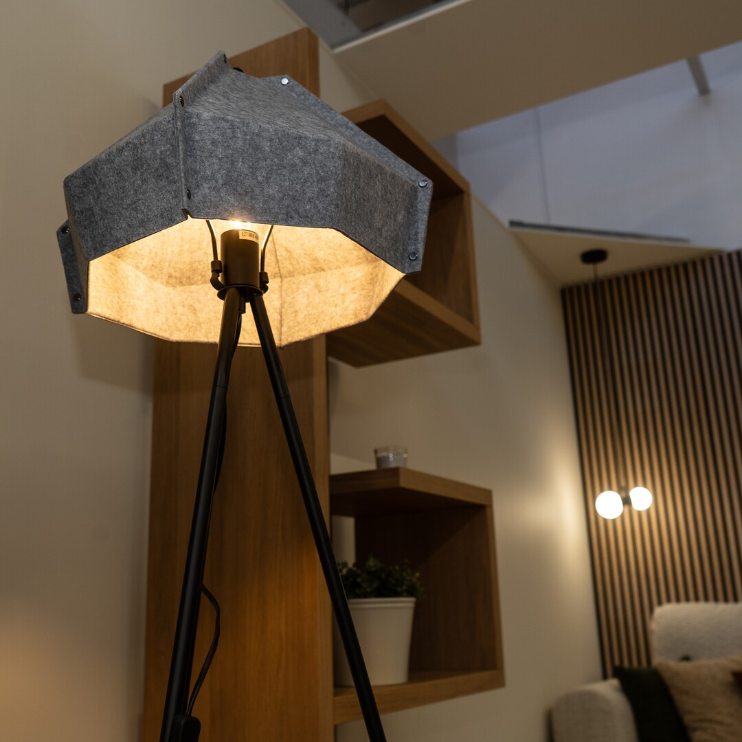 Lampa de podea Rabalux Lomiro este recomandată în special celor care doresc să aleagă o lampă pentru casă având în vedere conștientizarea mediului. Acest model este realizat în culoarea gri, cu un corp metalic și un abajur din fetru. Materialul din fetru folosit este fabricat din material reciclat ecologic. Aspectul unic al lămpii de podea nu este doar datorită materialului special, ci și datorită formei unice a abajurului și soluției cu trei picioare. Lampa este operată printr-un comutator pe cablu și poate fi utilizată cu o singură sursă de lumină cu o putere de până la 40 W. Tipul de soclu este E27. În funcție de preferințele tale, poți alege o sursă de lumină care emite lumină albă caldă sau naturală. Acest model este alegerea ideală pentru living, dormitor sau birou. Este livrat fără sursă de lumină.