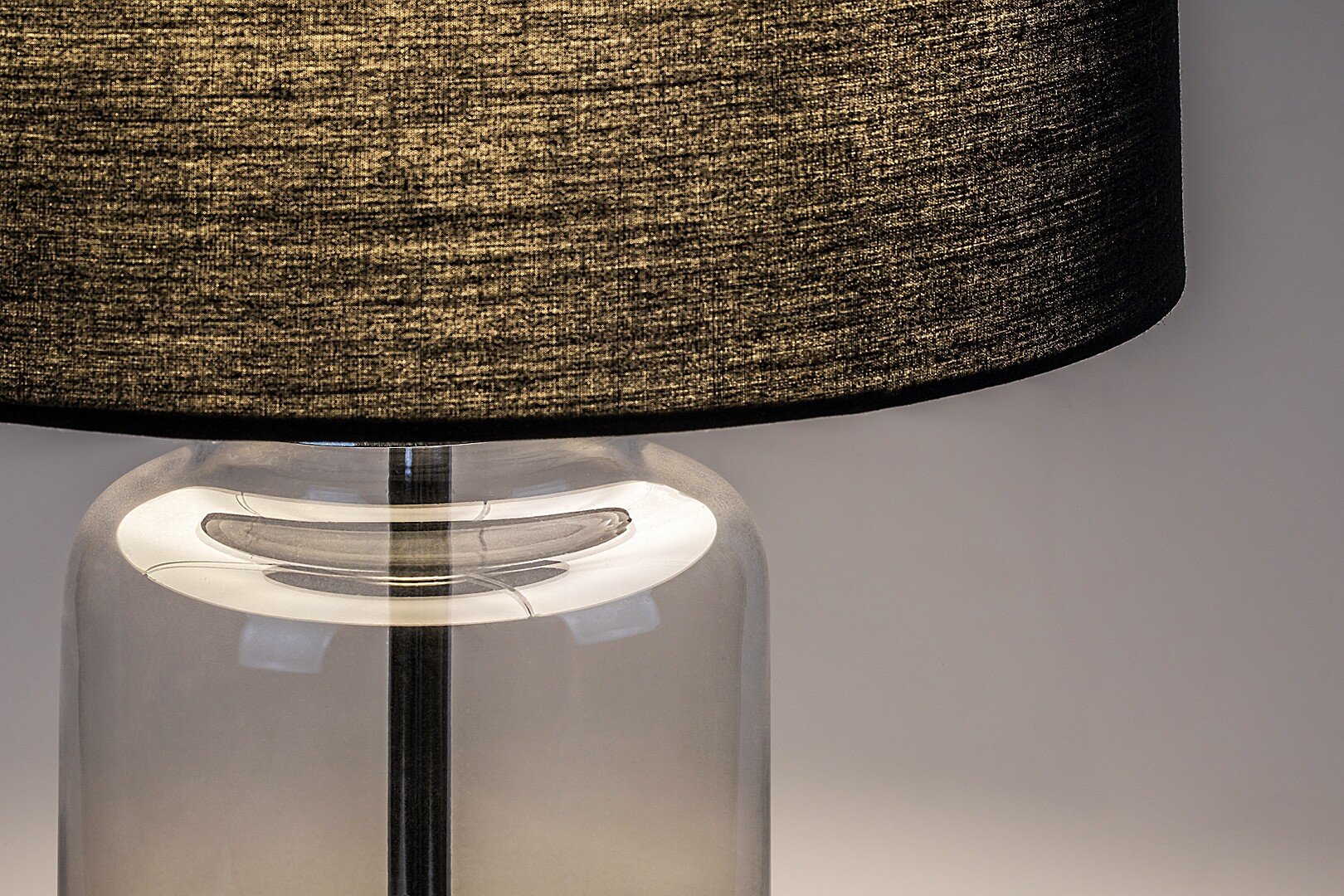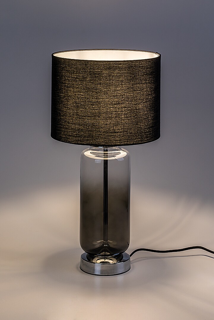 Lampa de masă Rabalux Rien este recomandată celor care caută o lampă complementară cu un aspect reținut, dar cu un design unic. Este ideală pentru dormitor sau living, plasată pe noptieră sau pe o masă. Suportul este realizat din sticlă colorată, având o formă subțire și cilindrică, iar abajurul este cilindric și realizat din material textil gri. Lampa de masă este completată de o bază decorativă mică, rotundă, din metal. Poate fi utilizată cu un singur bec cu o putere de până la 60 W. Tipul de priză este E27. Deoarece abajurul său de culoare închisă permite trecerea unei cantități mai mici de lumină, lampa este eficientă în crearea unei atmosfere relaxante înainte de culcare. Lampa de noapte este completată de un cablu textil negru și un întrerupător pe cablu. Este livrată fără sursa de lumină.