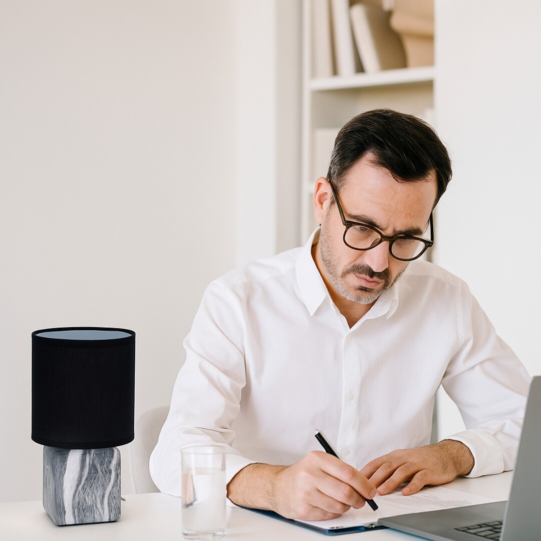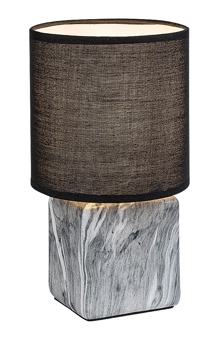 Lampa de masă Rabalux Nalisa este recomandată celor care caută o lampă complementară modernă și compactă. Acest model combină forme rotunde și unghiulare cu materiale ce imită aspectul natural: este realizată dintr-un suport din ceramică cu efect de marmură gri și alb și un abajur cilindric din material textil negru, deschis la partea superioară și inferioară. Este ideală pentru dormitor sau living, plasată pe noptieră sau pe o masă. Abajurul de culoare închisă permite un iluminat discret, astfel încât această lampă de masă este o alegere bună dacă trebuie să aprindeți lumina noaptea, dar nu doriți să deranjați partenerul. Poate fi utilizată cu un singur bec cu o putere de până la 40 W. Tipul de priză este E14. Lampa de noapte din ceramică vine cu un cablu negru și un întrerupător pe cablu. Este livrată fără sursa de lumină.