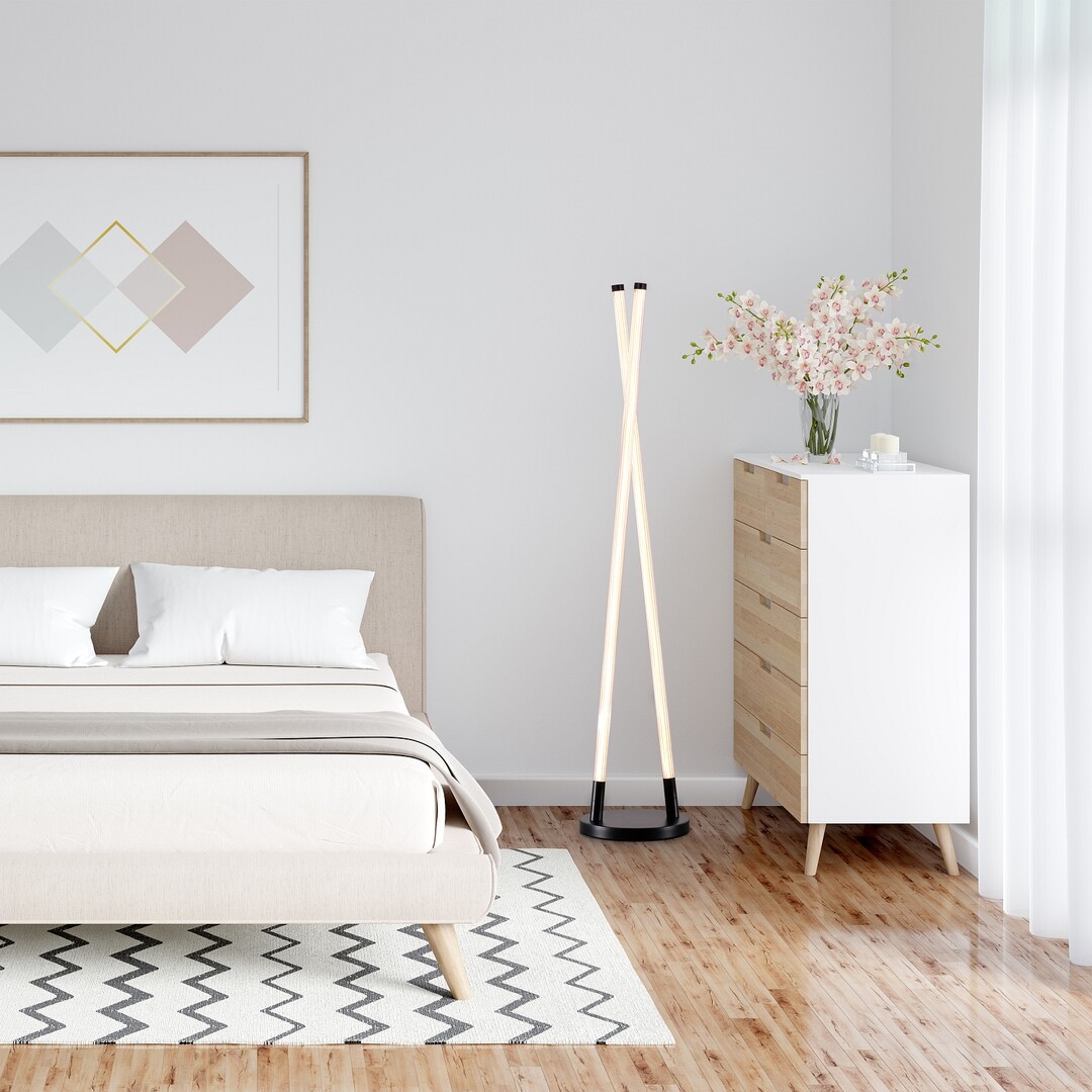 Lampa de podea Rabalux Nivaro este recomandată celor care preferă modelele minimaliste care pun accent pe funcționalitate. Unică prin simplitatea sa, este alegerea ideală pentru living, sufragerie, bucătărie sau dormitor. Corpul lămpii este format din două elemente tubulare verticale care formează un unghi și se intersectează într-un punct. Corpul este realizat din metal negru, în timp ce abajurul este compus din acril alb. Lampa este completată de o bază decorativă rotundă neagră și poate fi operată printr-un comutator de picior practic. Are o sursă de lumină LED încorporată care emite o lumină albă caldă. Intensitatea luminoasă a acestui model îl face ideal pentru iluminarea camerelor mari, iar tehnologia LED asigură o funcționare eficientă din punct de vedere energetic și o durată lungă de viață.