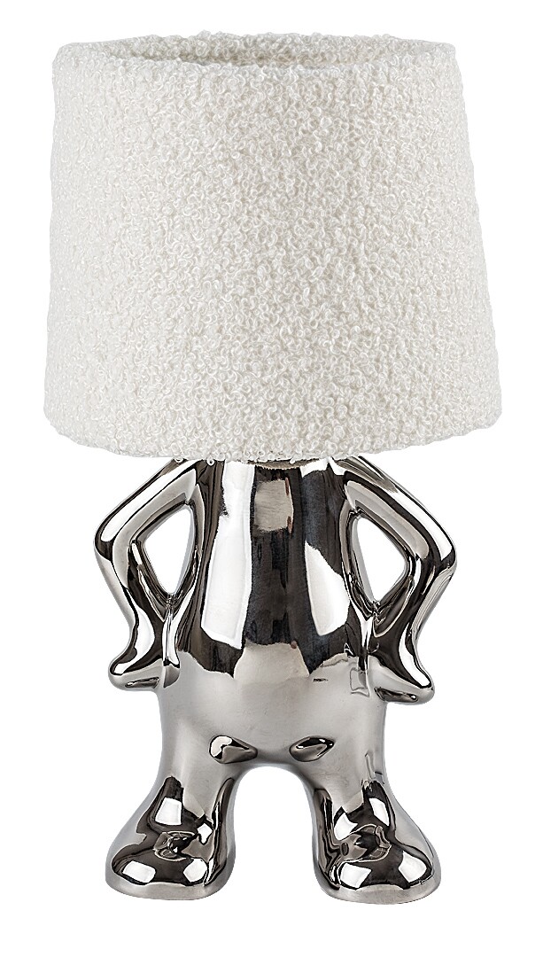 Lampa de masă Rabalux Smurfy este recomandată celor care preferă lămpile creative cu un design neobișnuit, care aduc un zâmbet pe fața lor în viața de zi cu zi. Cine nu își amintește de simpaticii Ștrumfi? Deși această lampă cu aspect vesel nu este albastră, corpul său este modelat ca un ștrumf. În locul unei baze decorative tradiționale, lampa stă pe picioarele unui ștrumf și are un abajur textil pufos de culoare crem în locul capului de ștrumf. Corpul lămpii este realizat din ceramică de culoare cromată. Acest model „ștrumfesc” este perfect pentru living sau dormitor. Este operat printr-un comutator pe cablu și poate fi utilizat cu o singură sursă de lumină cu o putere de până la 40 W. Tipul de soclu este E14. În funcție de preferințele tale, poți alege o sursă de lumină care emite lumină albă caldă sau naturală. Lampa decorativă de masă este livrată fără sursă de lumină.