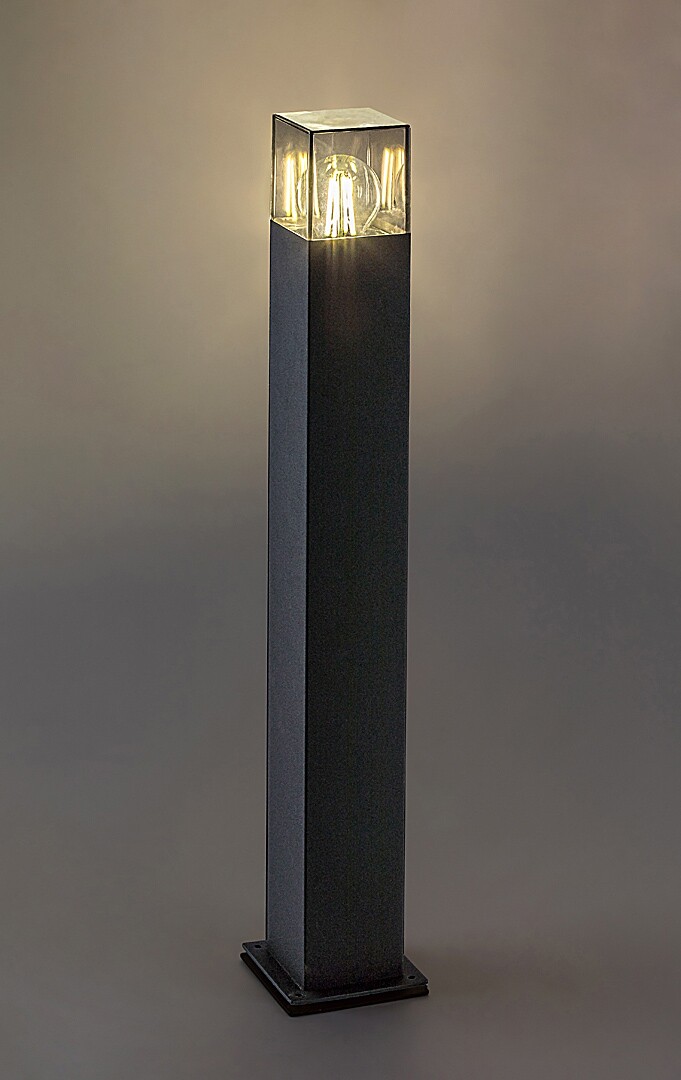 Lampa de podea de exterior Loanda in stil modern este o alegere excelentă pentru terasă sau pentru grădină. Modelul din aluminiu negru se caracterizează prin forme geometrice, corpul unghiular a lămpii fiind completat de o bază pătrată plată și un abajur cubic din plastic colorat. Loanda poate fi folosită cu o singură sursă de lumină cu o putere de până la 12 W, tip soclu E27. Deoarece sursa de lumină este clar vizibilă prin abajurul colorat, puteți face acest model și mai interesant, folosindu-l cu un bec estetic, cu o formă diferită de cea tradițională. Dimensiunile lămpii de exterior sunt următoarele: lățime 80 mm, înălțime 650 mm, distanța față de perete 110 mm, diametru de instalare 110 mm. Lampa are o protecție IP44, care garantează că aceasta este protejată împotriva prafului, precum și împotriva stropirii cu apă din orice direcție. Lampa de exterior de perete Loanda se livrează fără sursă de lumină.